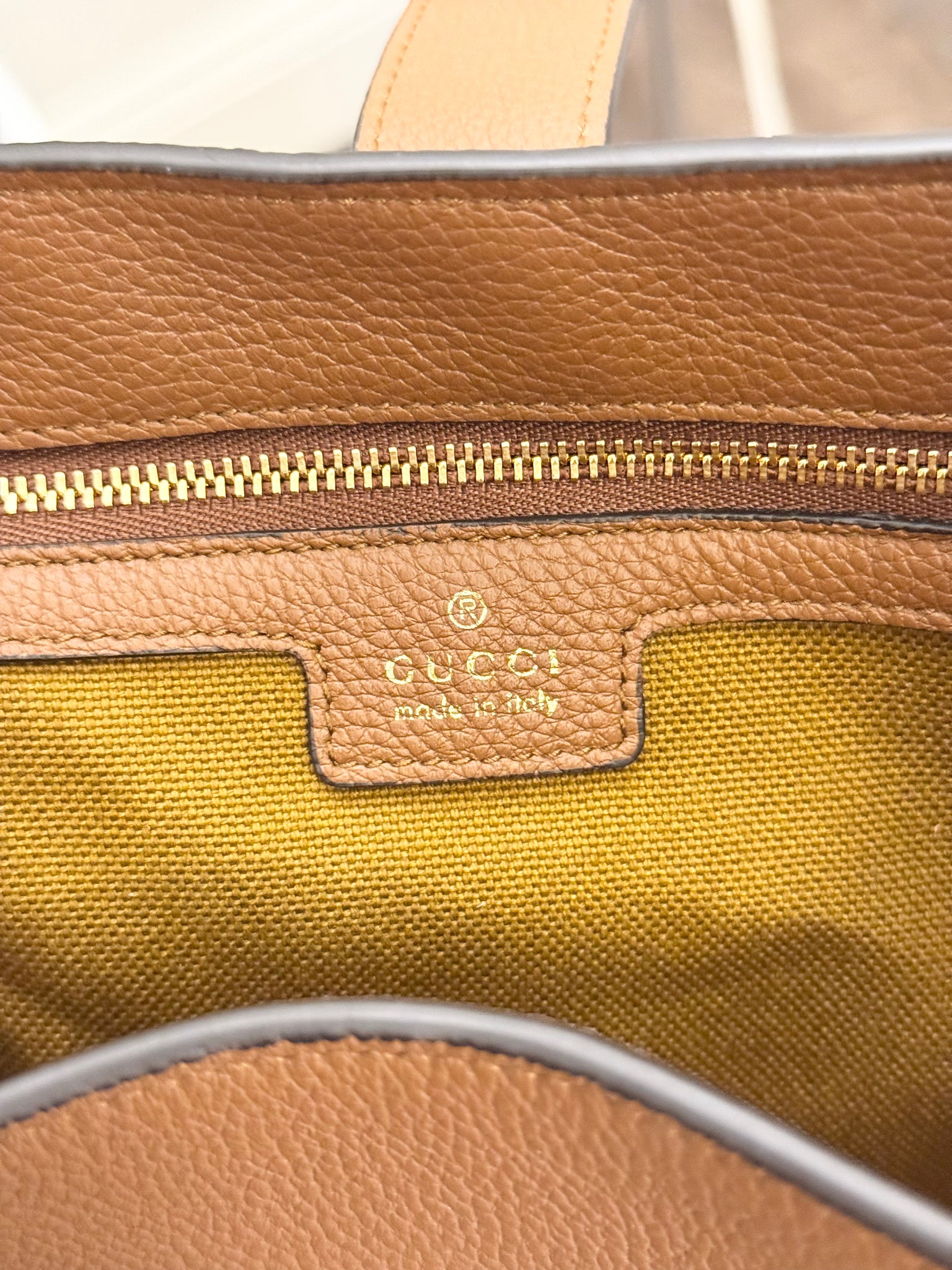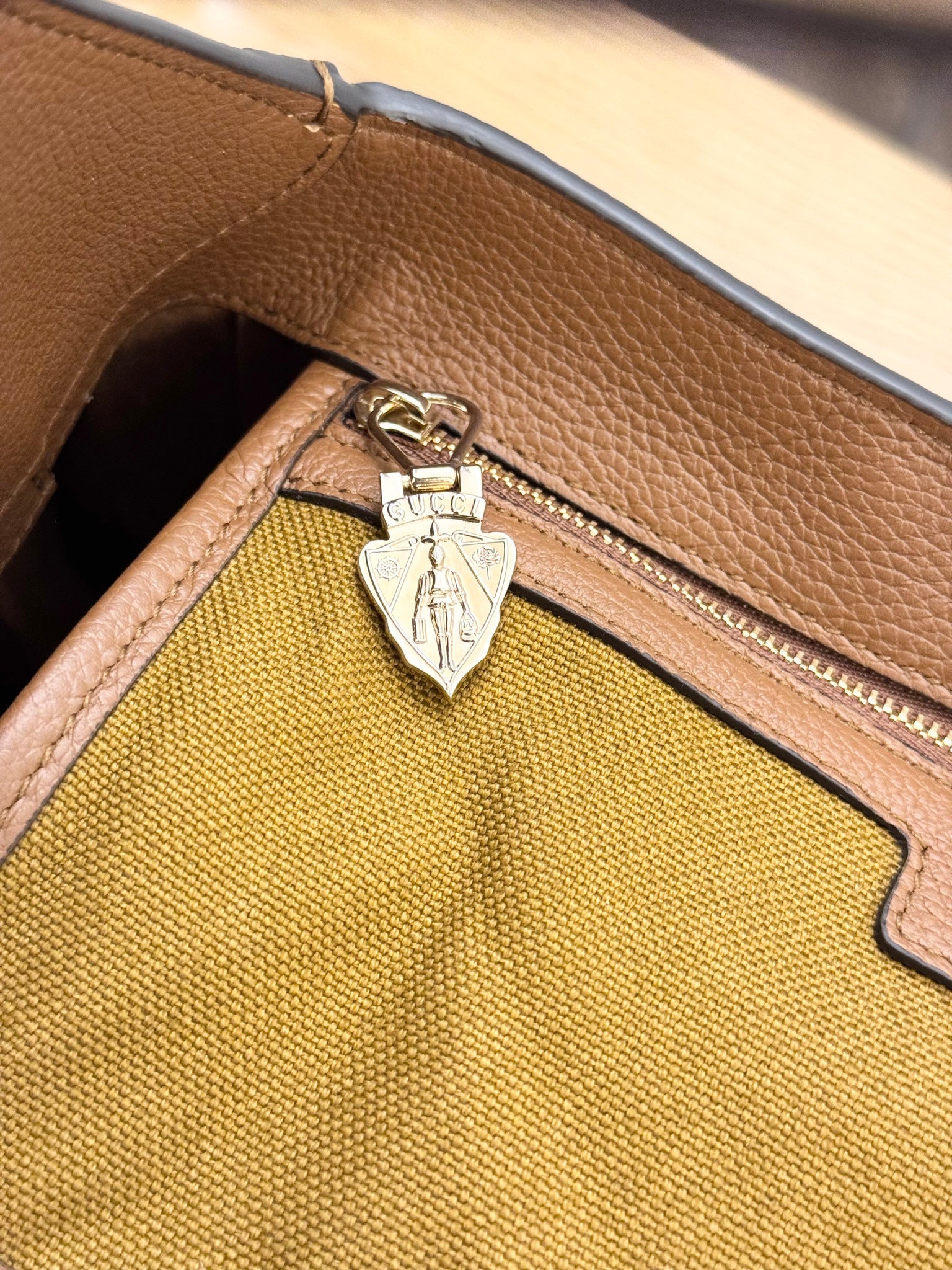 - Interior: 1 zip pocket with Gucci Crest zip puller