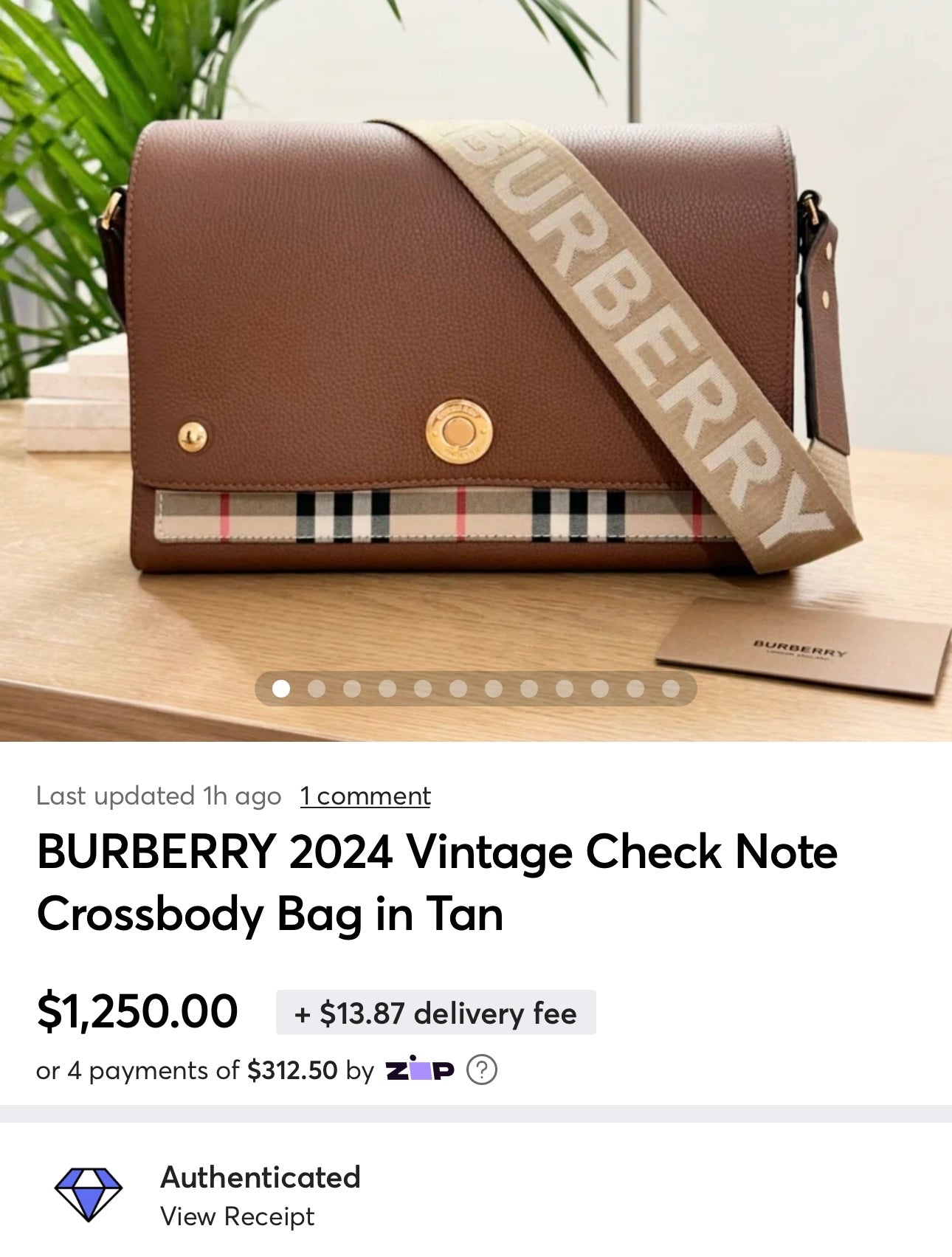 ![Load image into Gallery viewer, [SOLD]BURBERRY 2024 Vintage Check Note Crossbody Bag in Tan](http://www.elluxeshop.com/cdn/shop/files/1A829C1C-D4D0-4F15-92BE-95A820FA97A1_110x110@2x.jpg?v=1732594515)