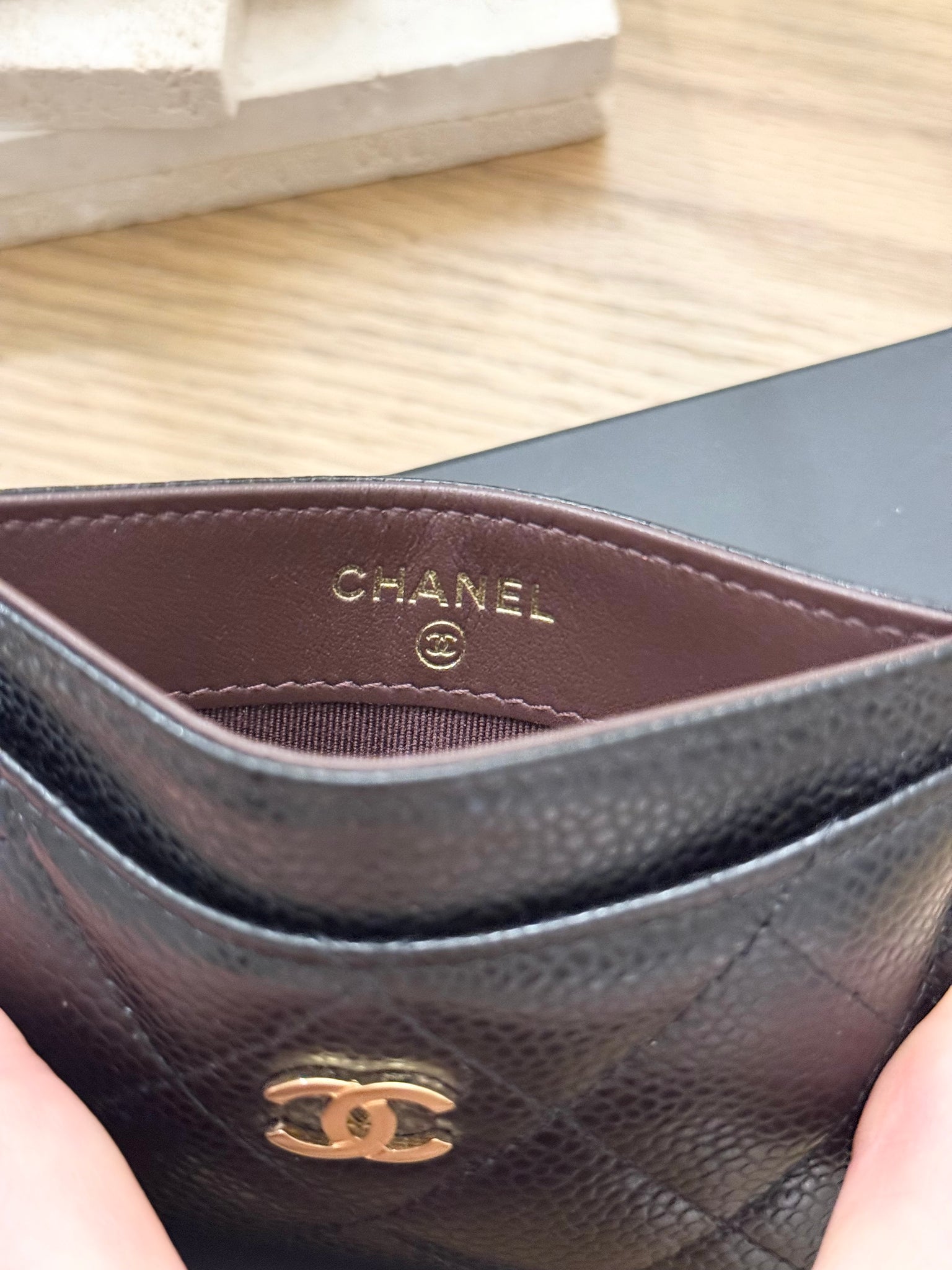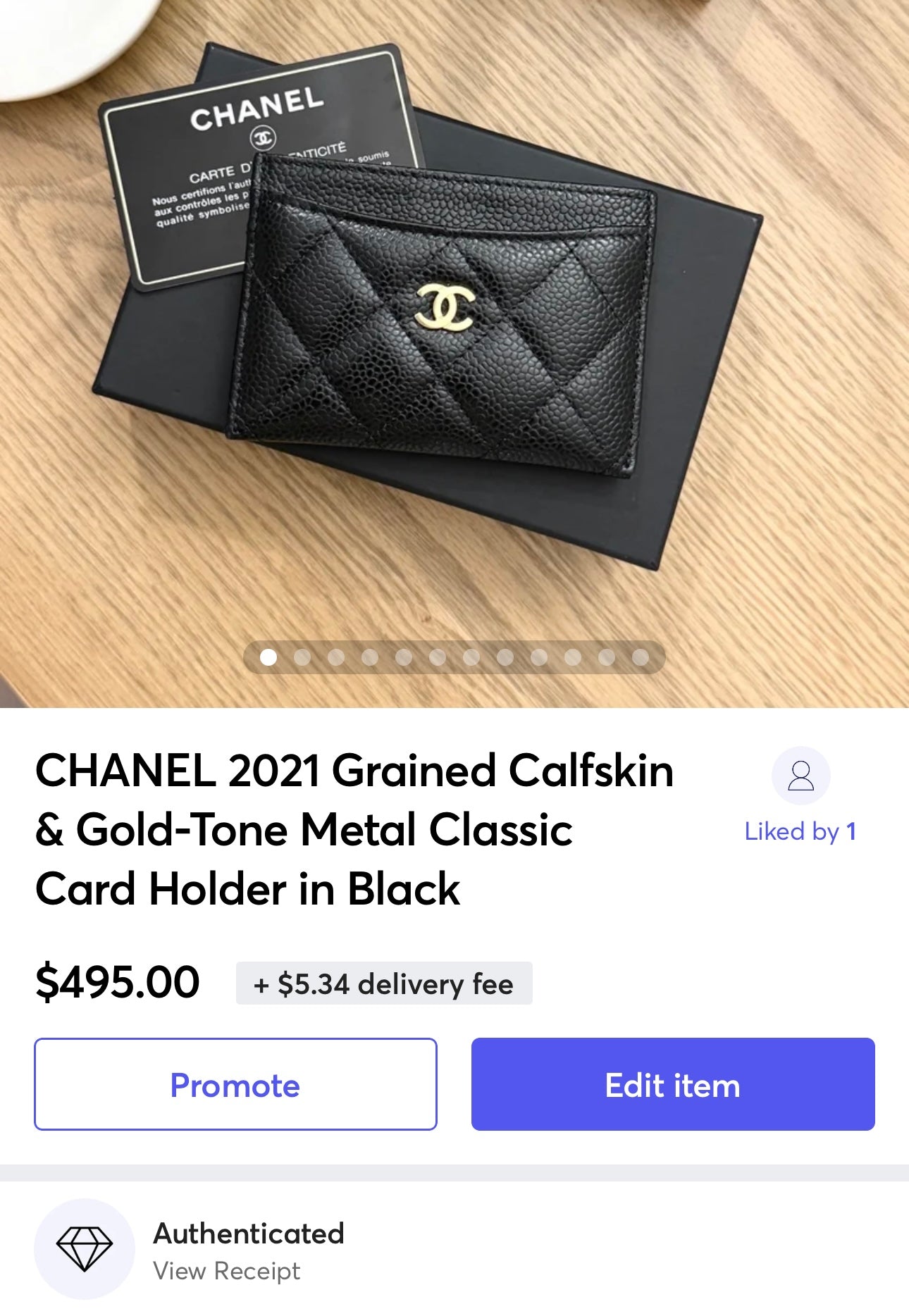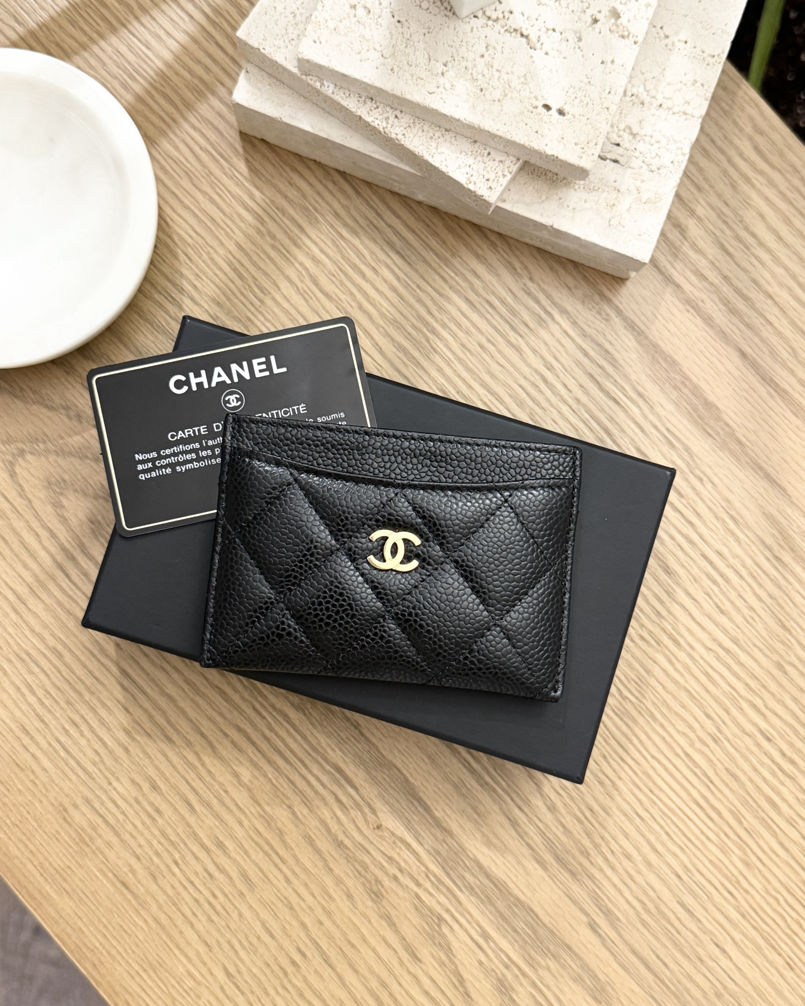 CHANEL 2021 Grained Calfskin & Gold-Tone Metal Classic Card Holder in Black