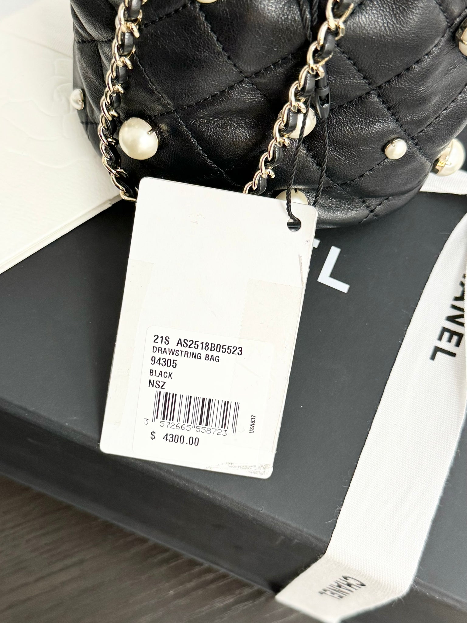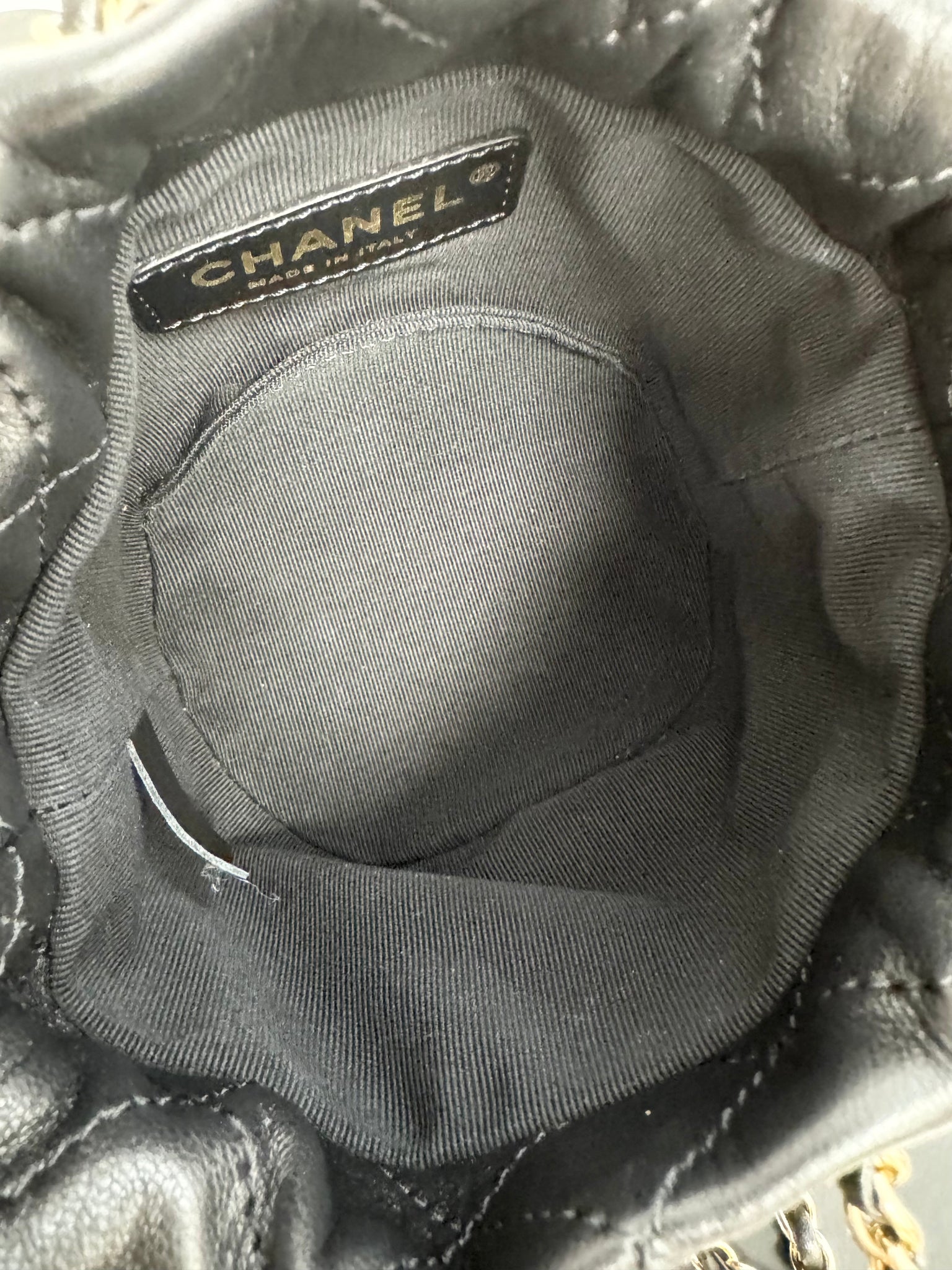 CHANEL 2021 Quilted Pearl Mini About Pearls Drawstring Bucket Bag in Black