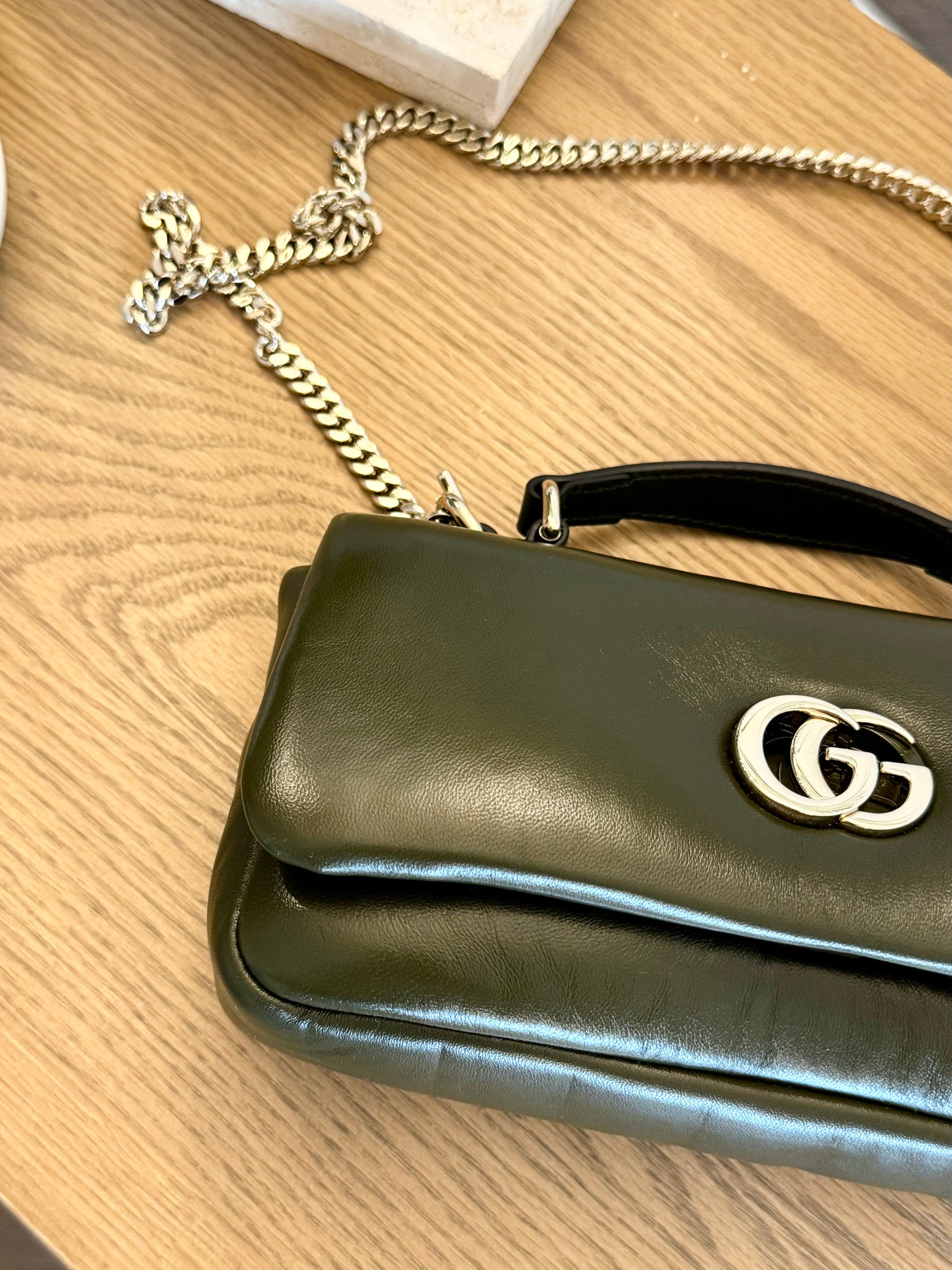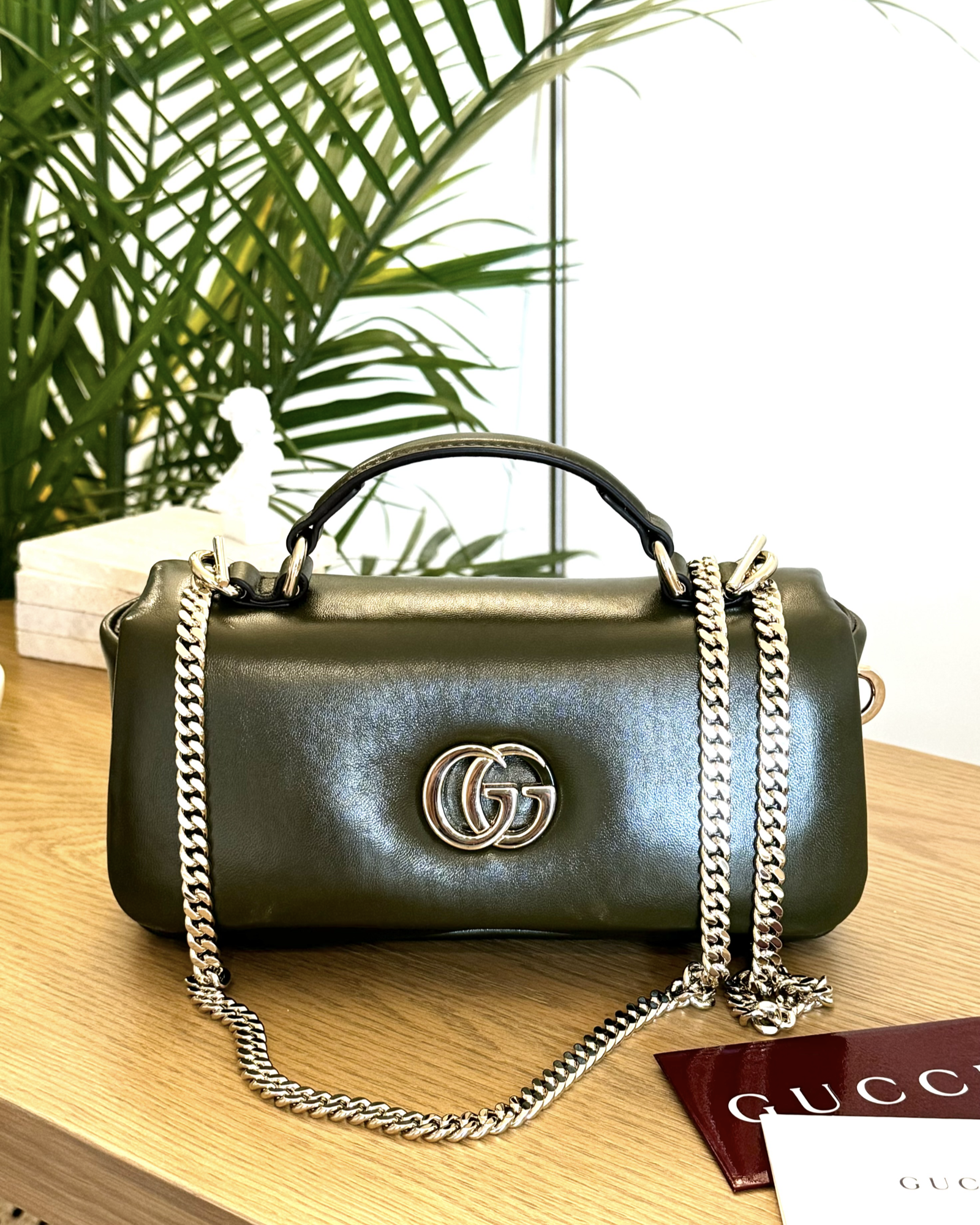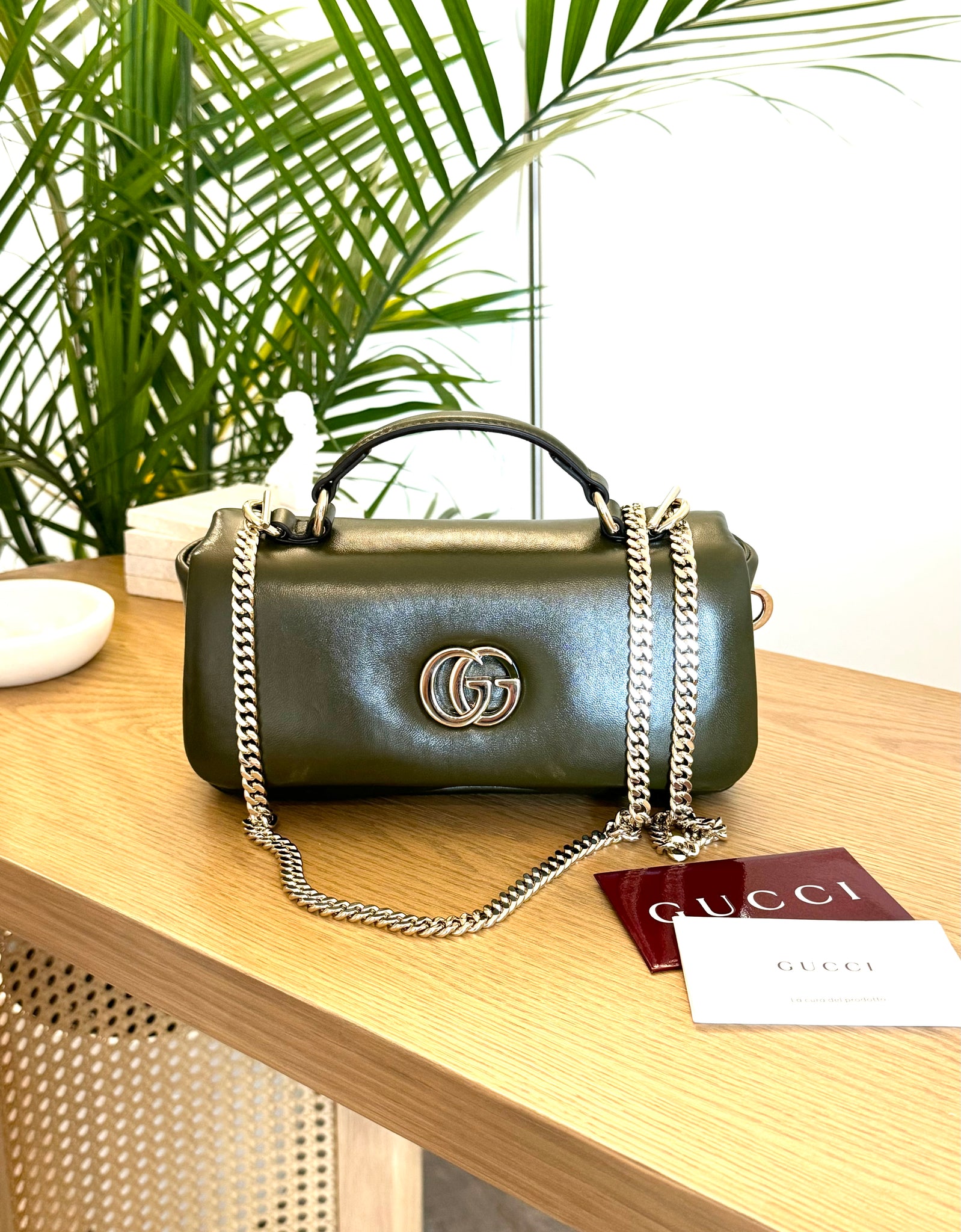 ![Load image into Gallery viewer, [SOLD] GUCCI GG Milano Mini Leather Top Handle Bag in Dark Olive](http://www.elluxeshop.com/cdn/shop/files/FullSizeRender_de5097ea-1379-4636-927c-729aca116c24_110x110@2x.jpg?v=1731200486)