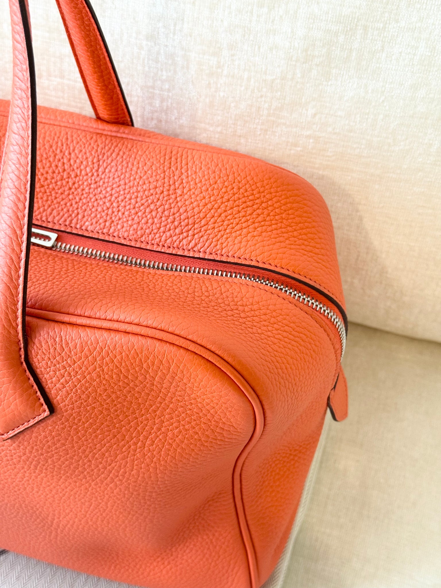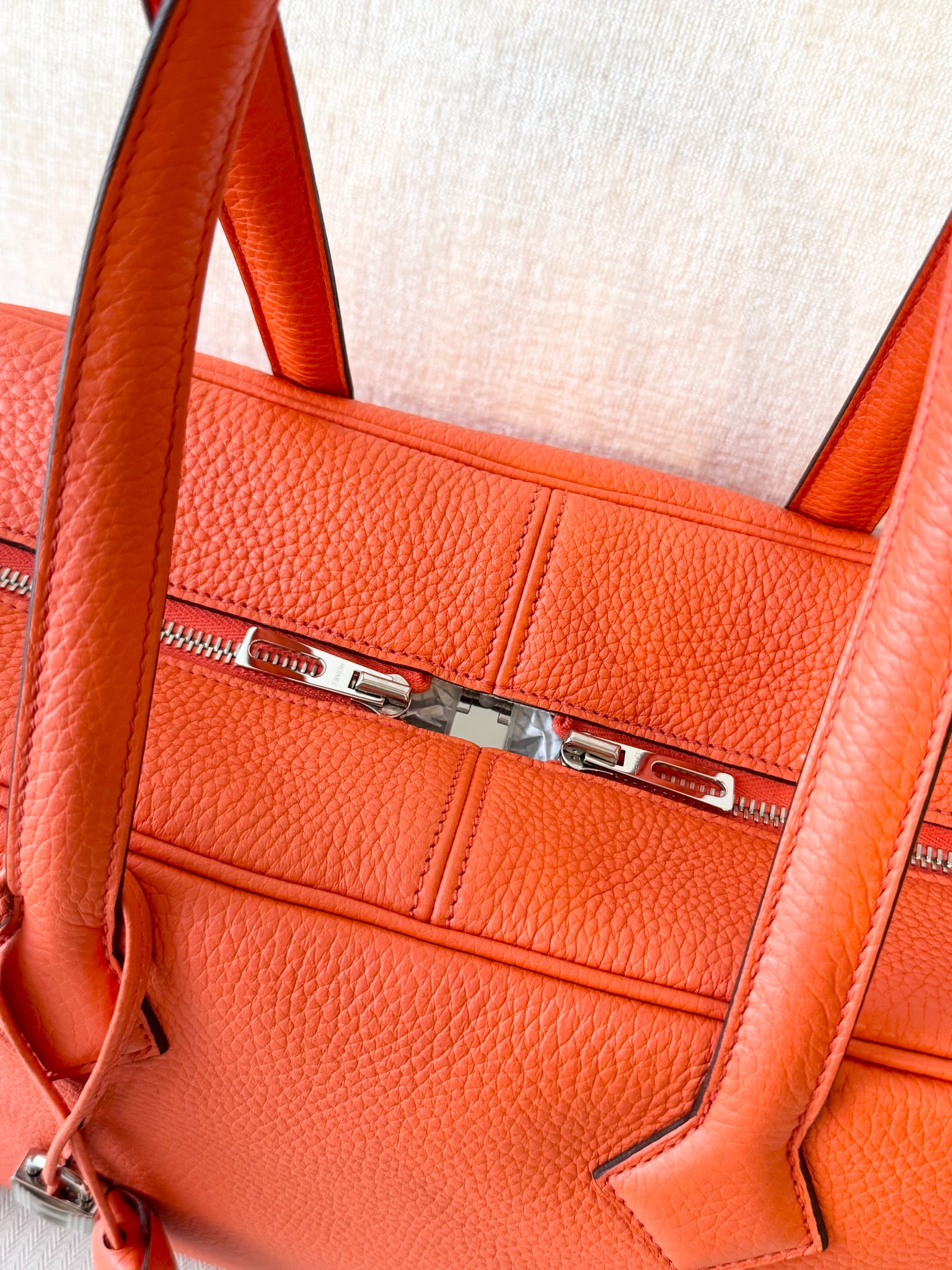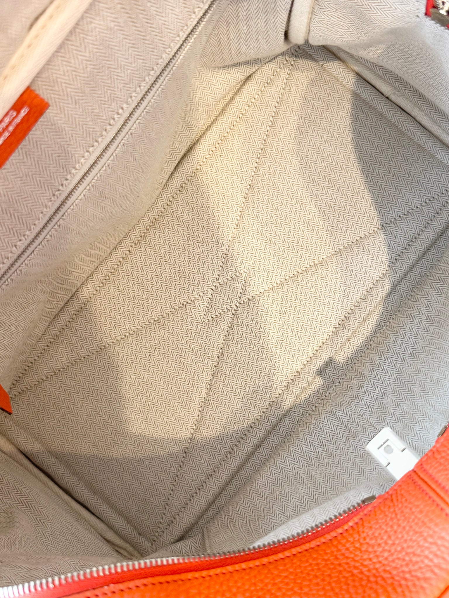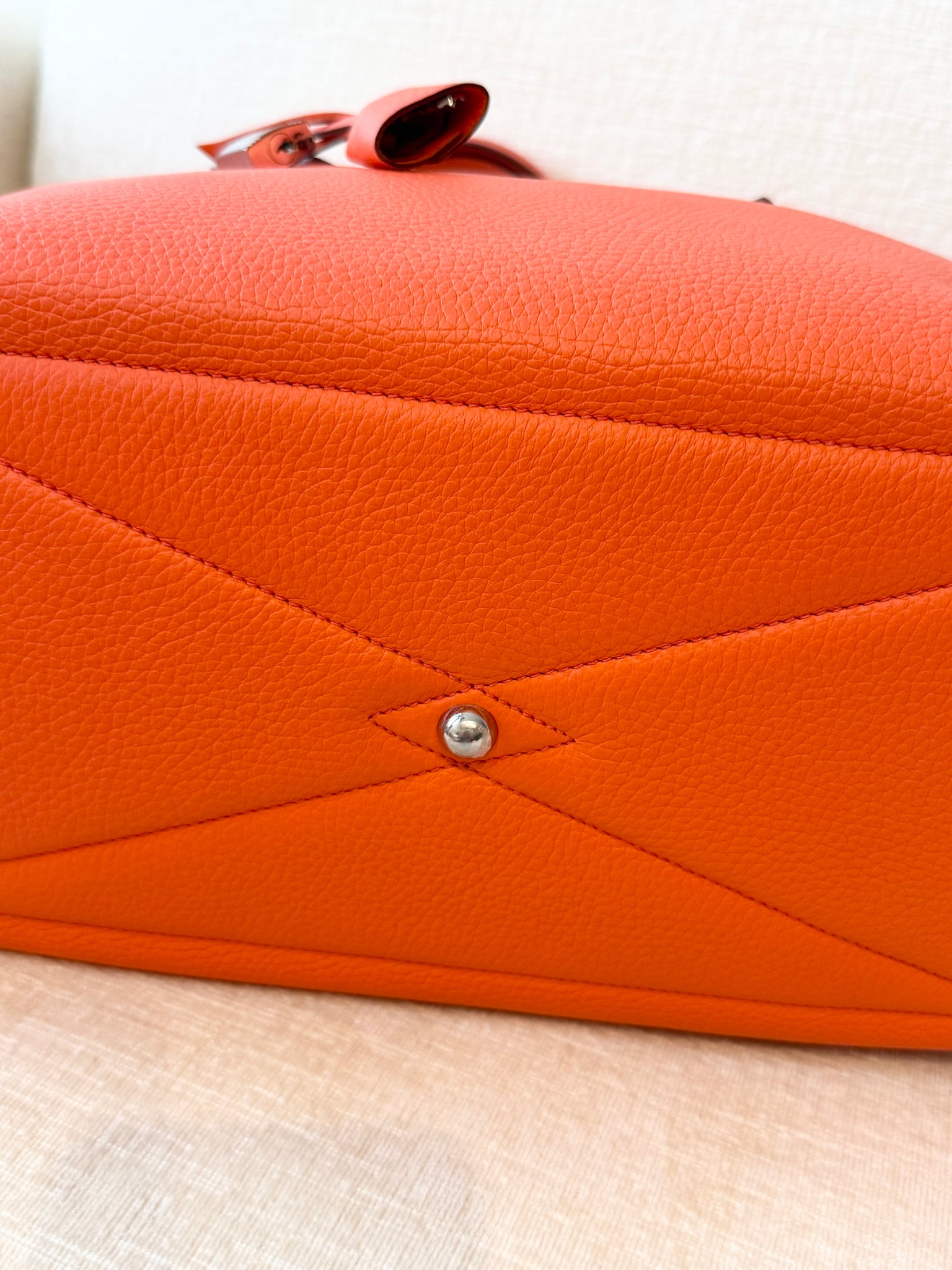 - Great pre-owned condition. Clean interior. The bag still has plastic on the feet. No wear on handles. Most hardware still has the plastic on. Minimal to no wear on bottom corners.