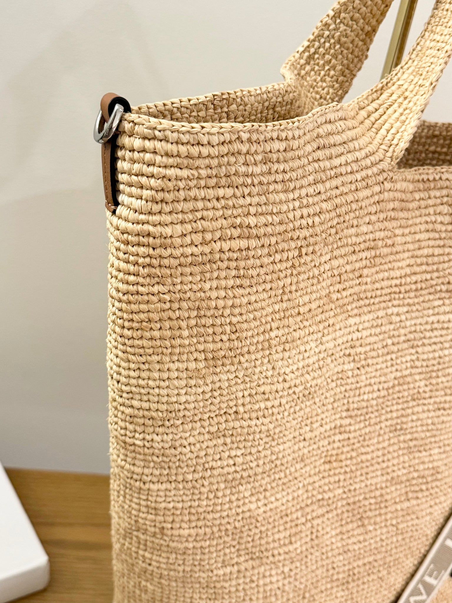 - Loewe "Slit" large tote bag in soft handwoven raffia and polyester