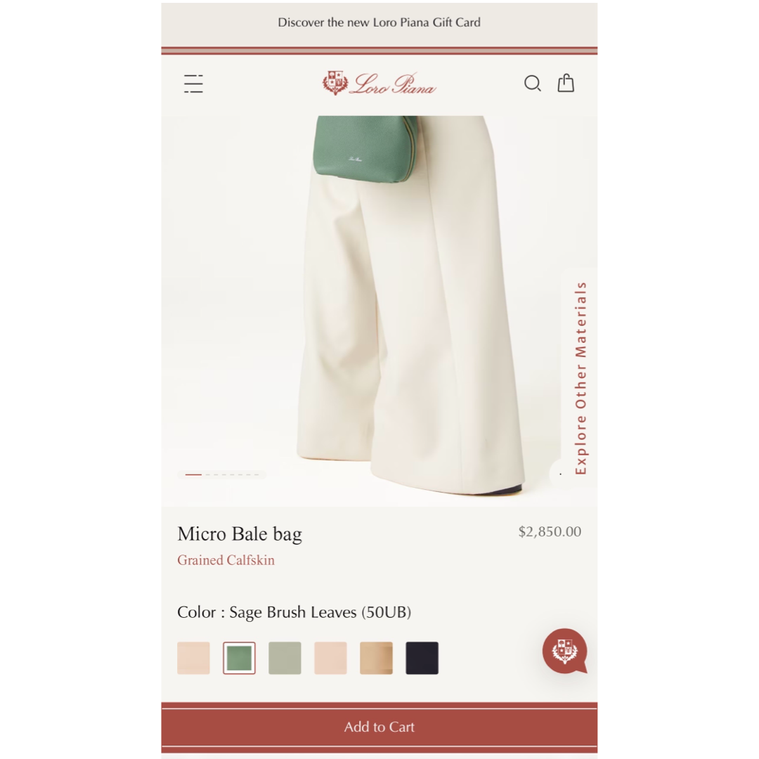 LORO PIANA 2024 Grained Calfskin Micro Bale Crossbody Bag in Green