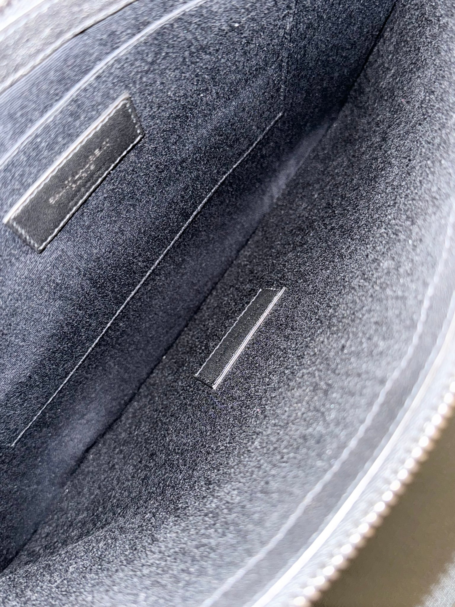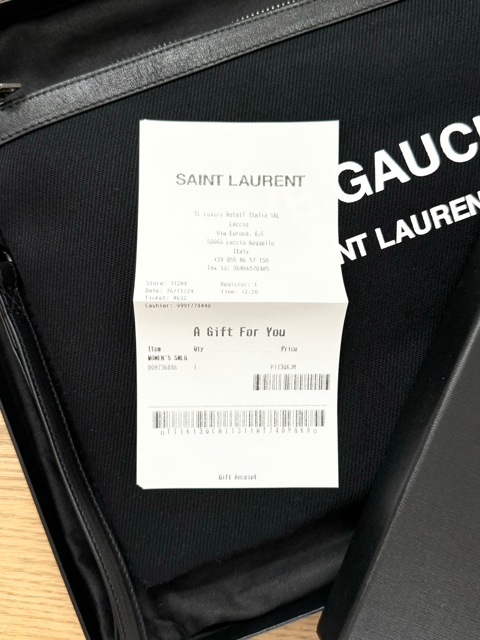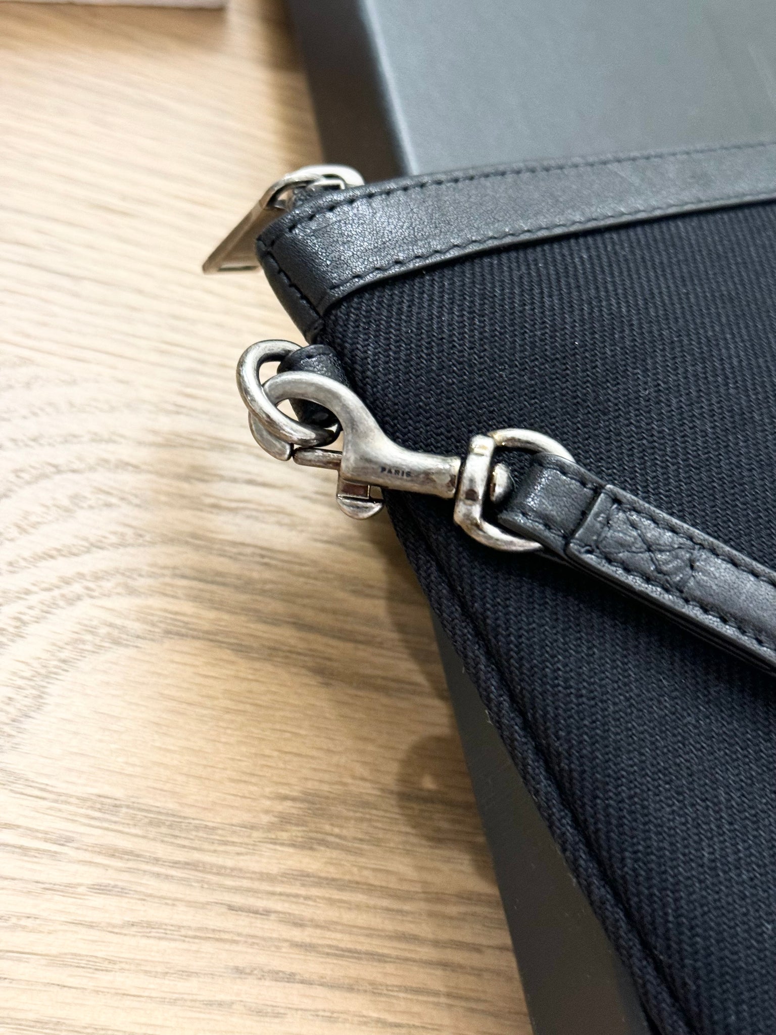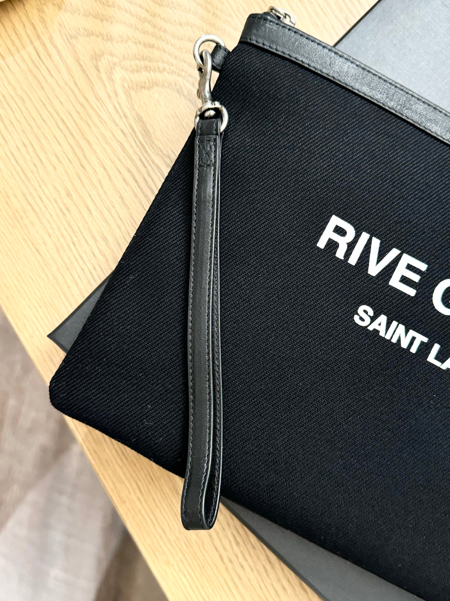 SAINT LAURENT Rive Gauche Linen Canvas Wristlet Pouch in Black