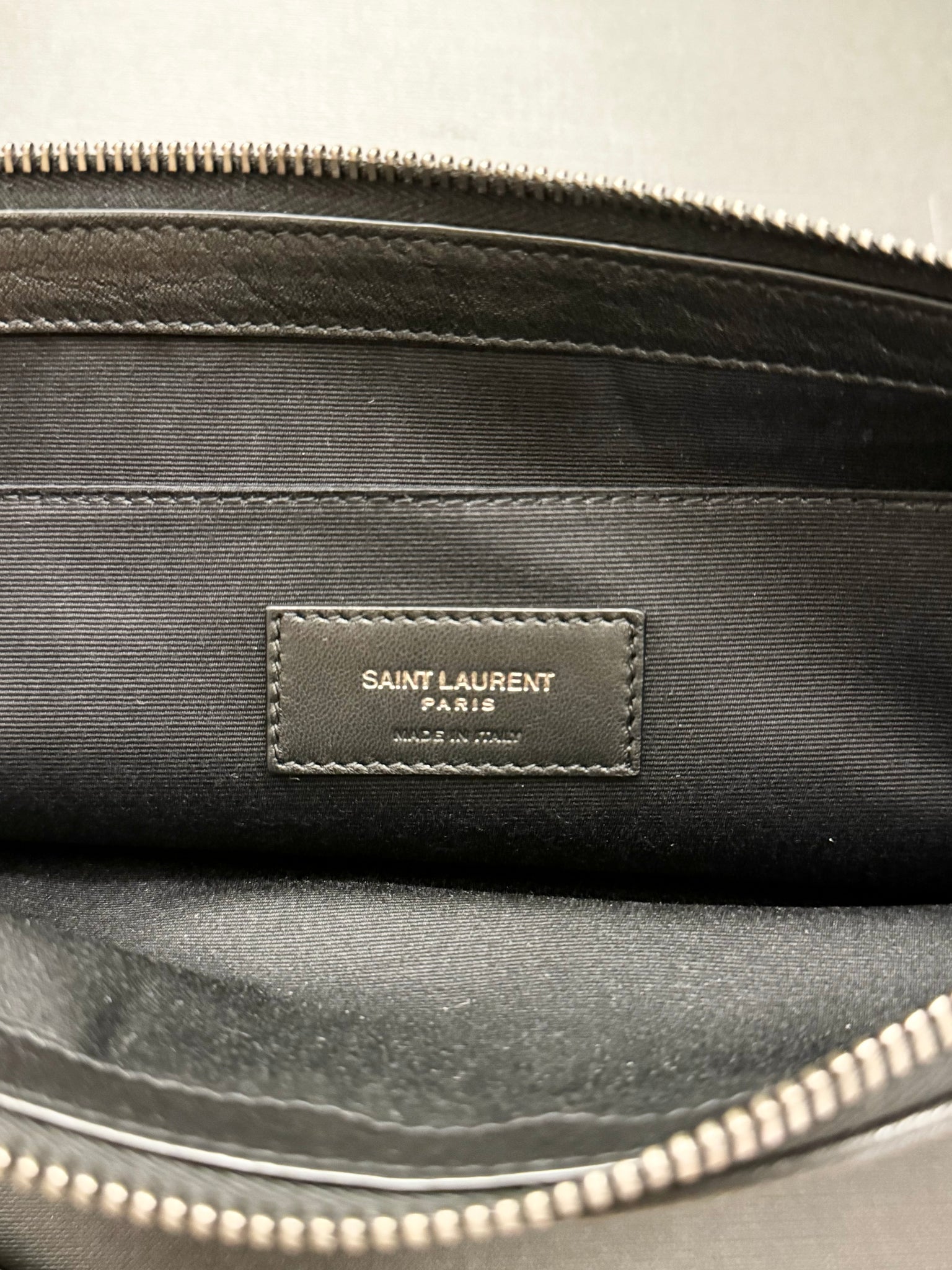 • Load image into Gallery viewer, SAINT LAURENT Rive Gauche Linen Canvas Wristlet Pouch in Black