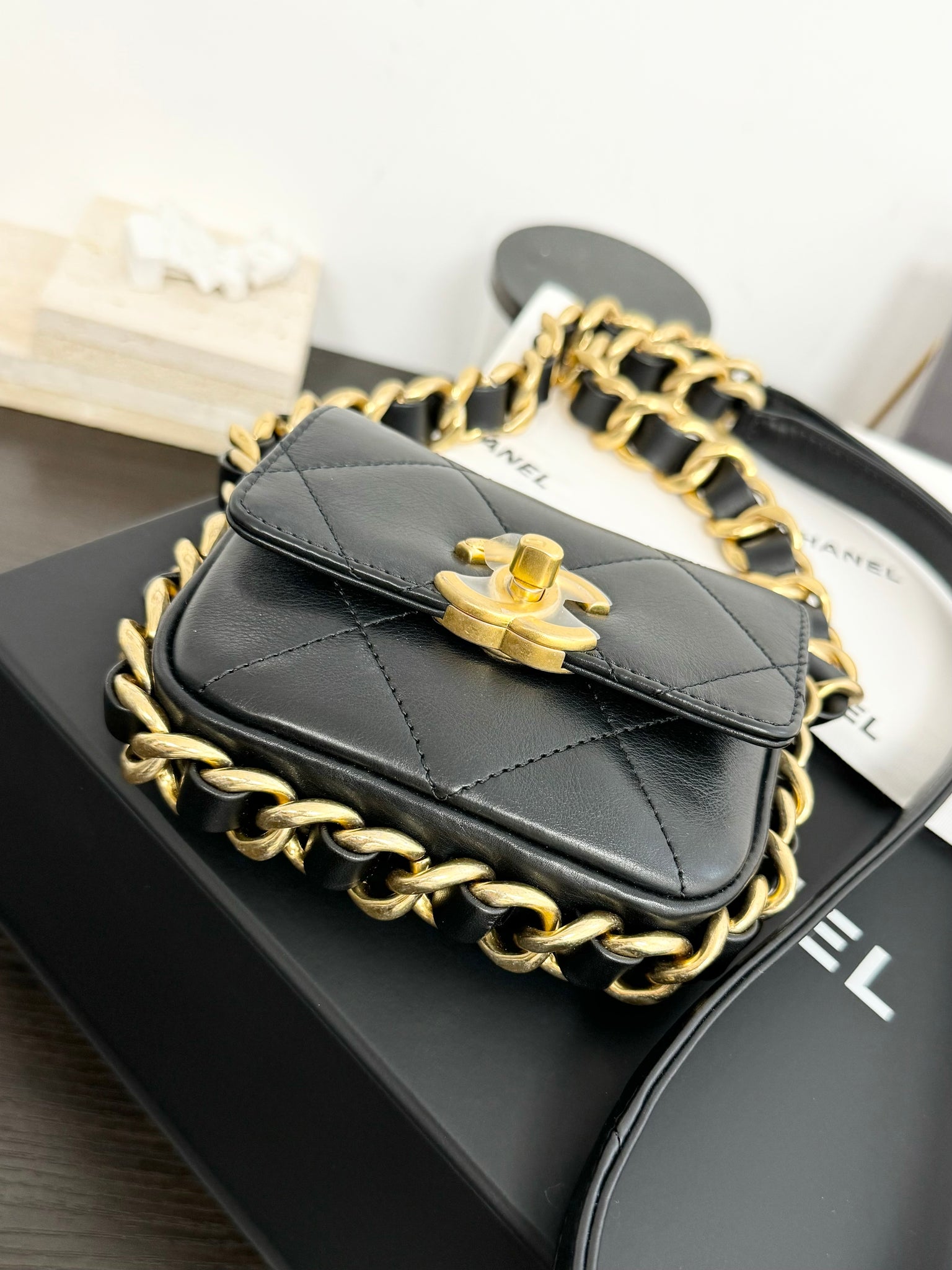 ▪️SOLD▪️CHANEL 2021 Calfskin Quilted Mini Framing Chain Crossbody Bag in Black