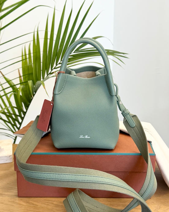LORO PIANA 2024 Grained Calfskin Micro Bale Crossbody Bag in Green