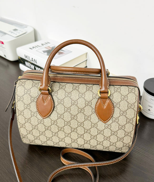 ▪️SOLD▪️GUCCI GG Supreme Canvas Small Boston Bag in Beige/Brown