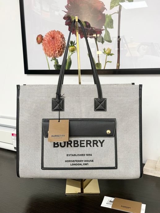 BURBERRY Medium Horseferry Canvas Tote - Grey