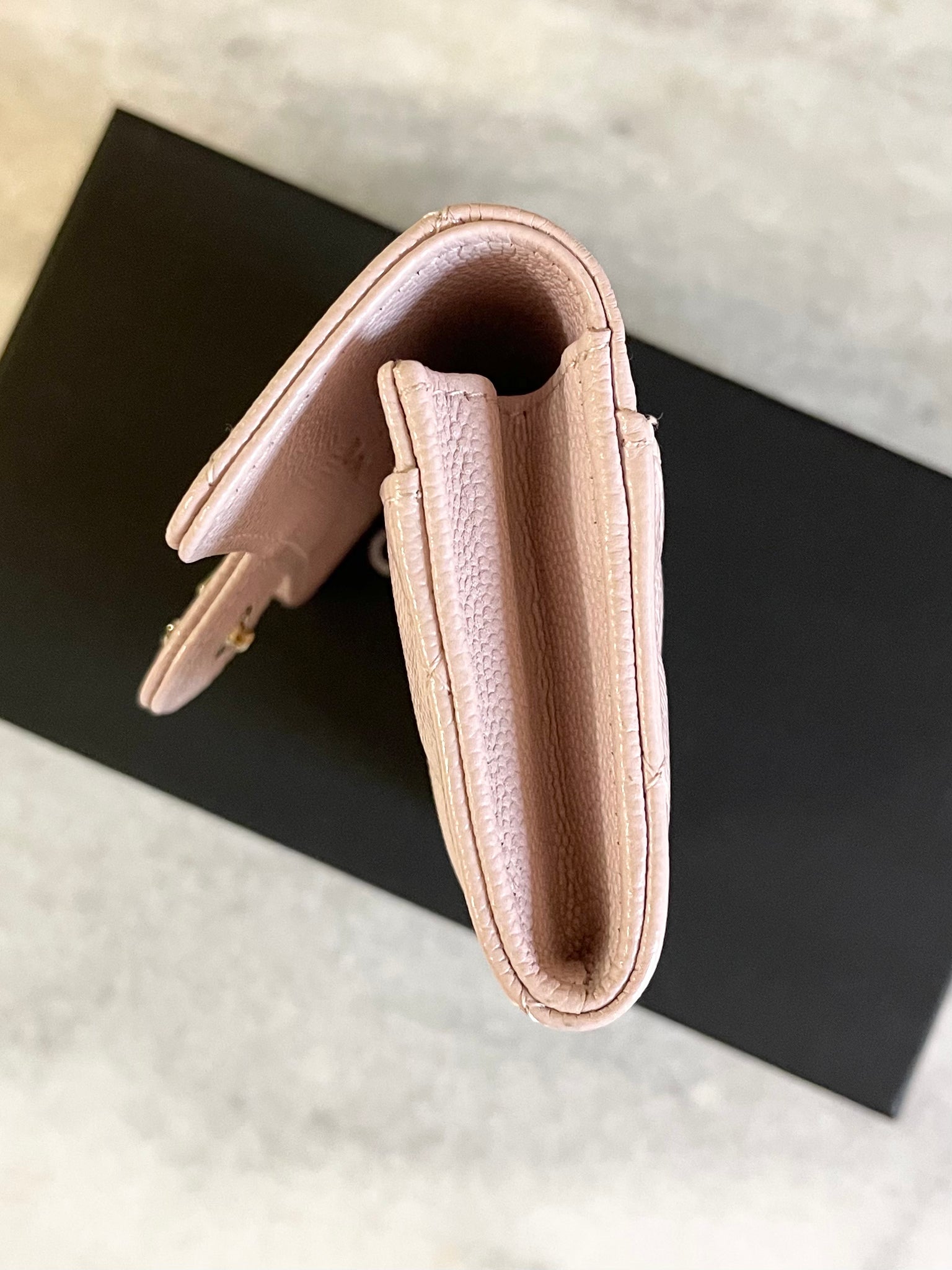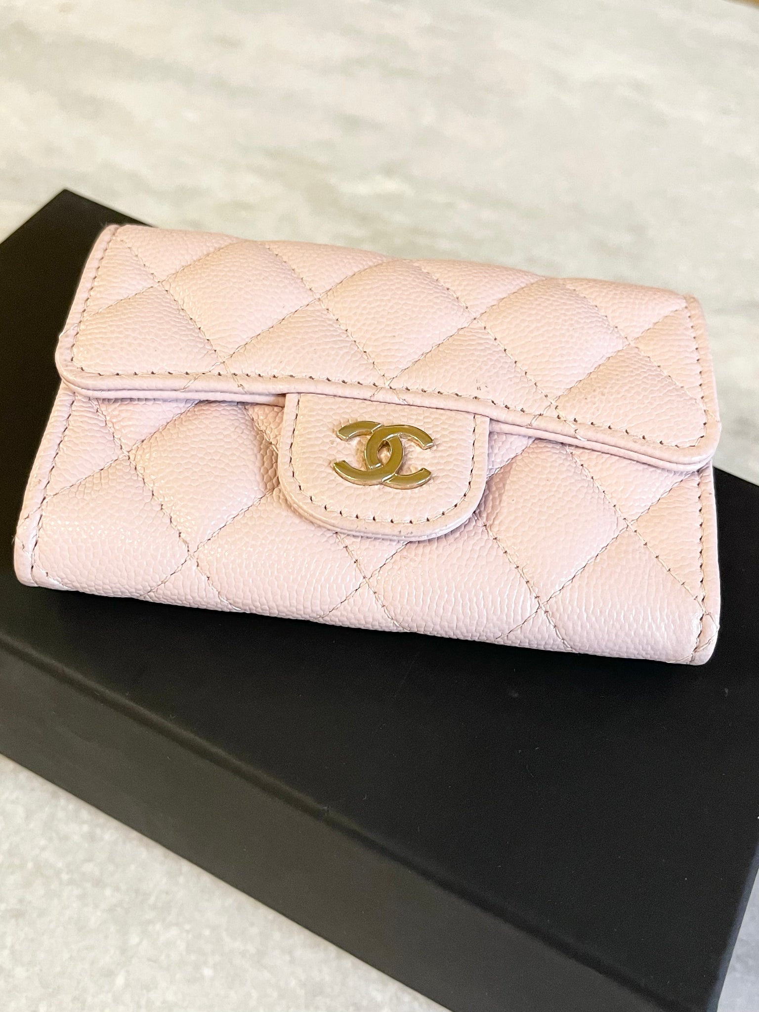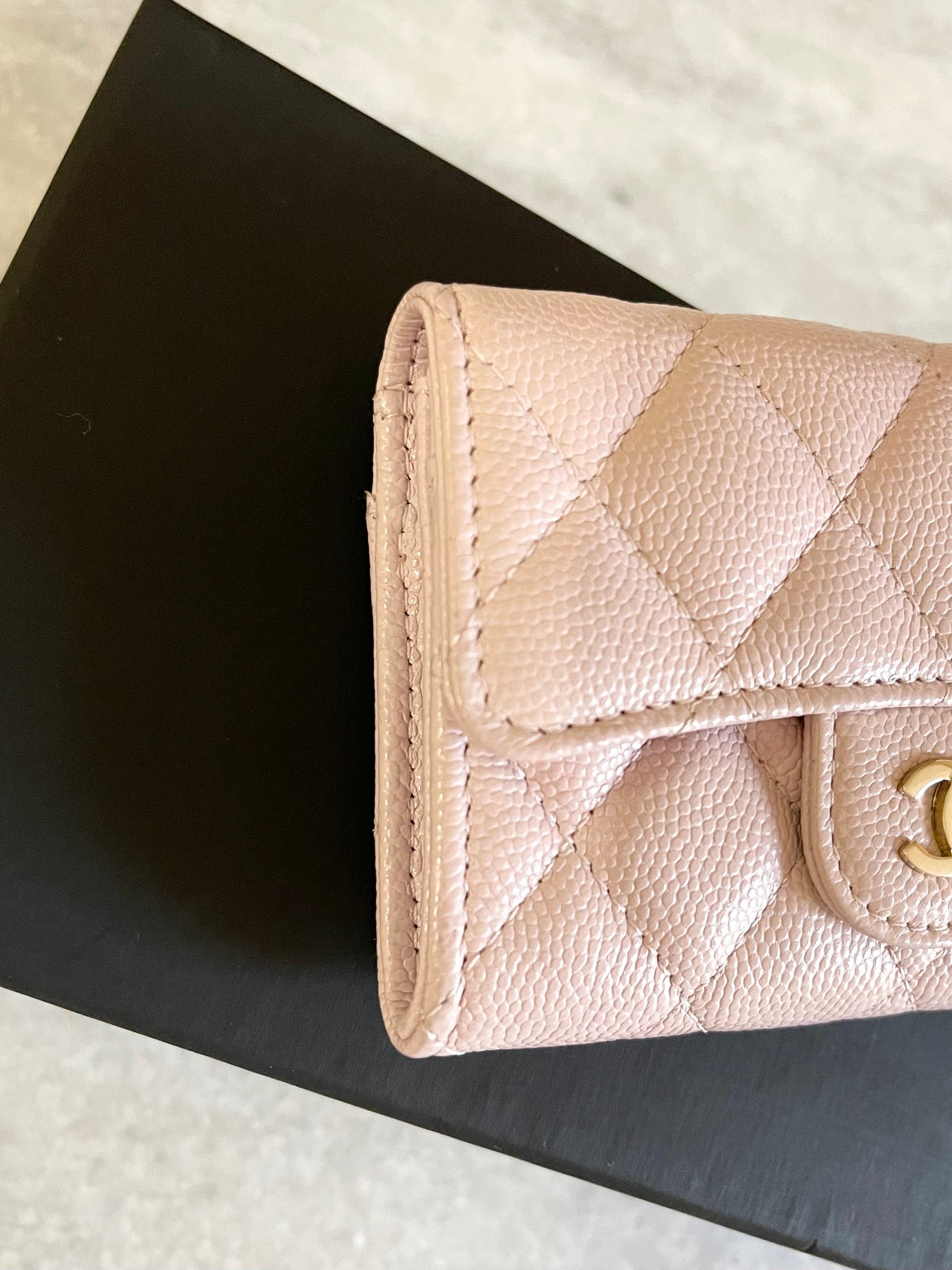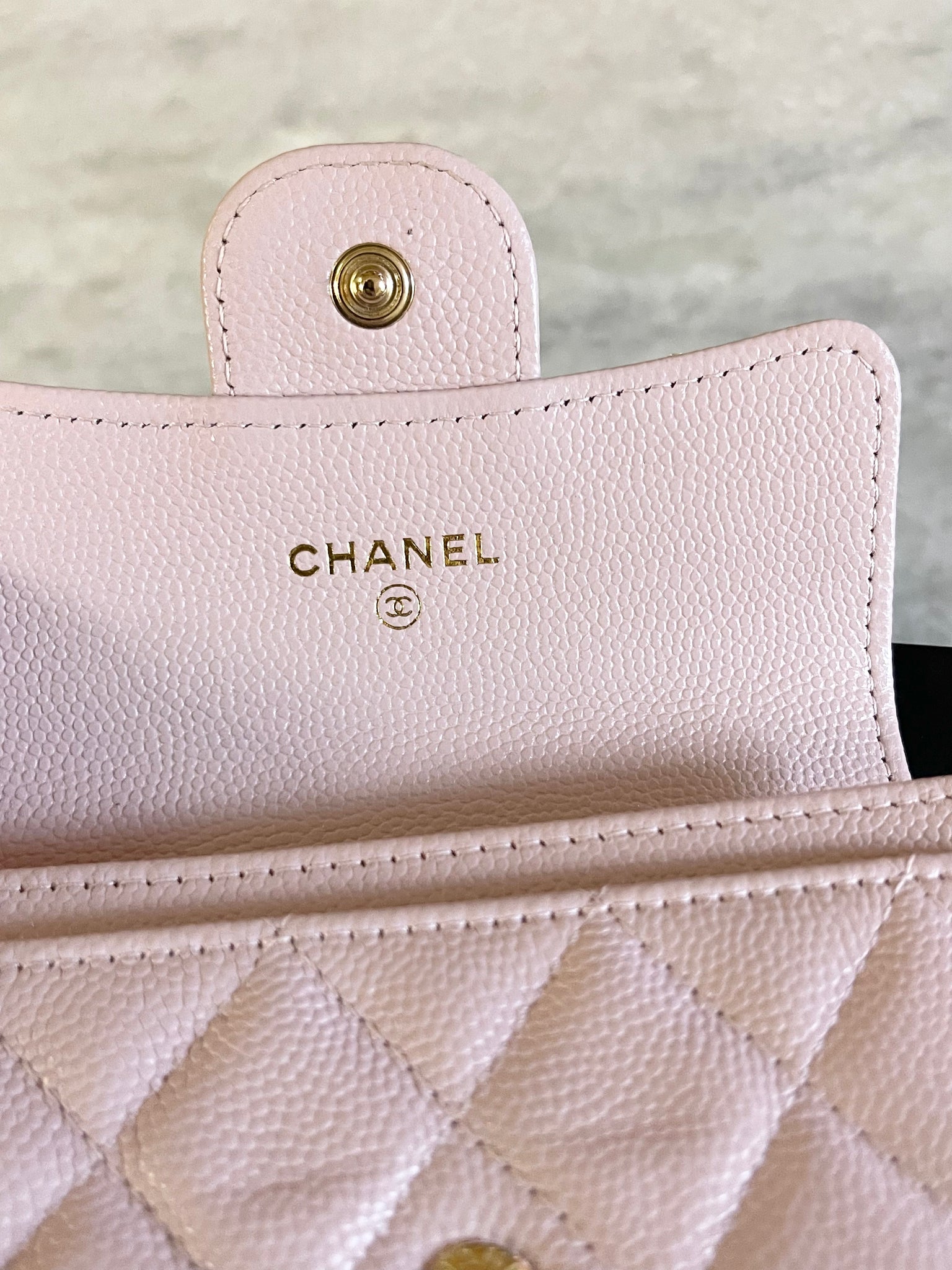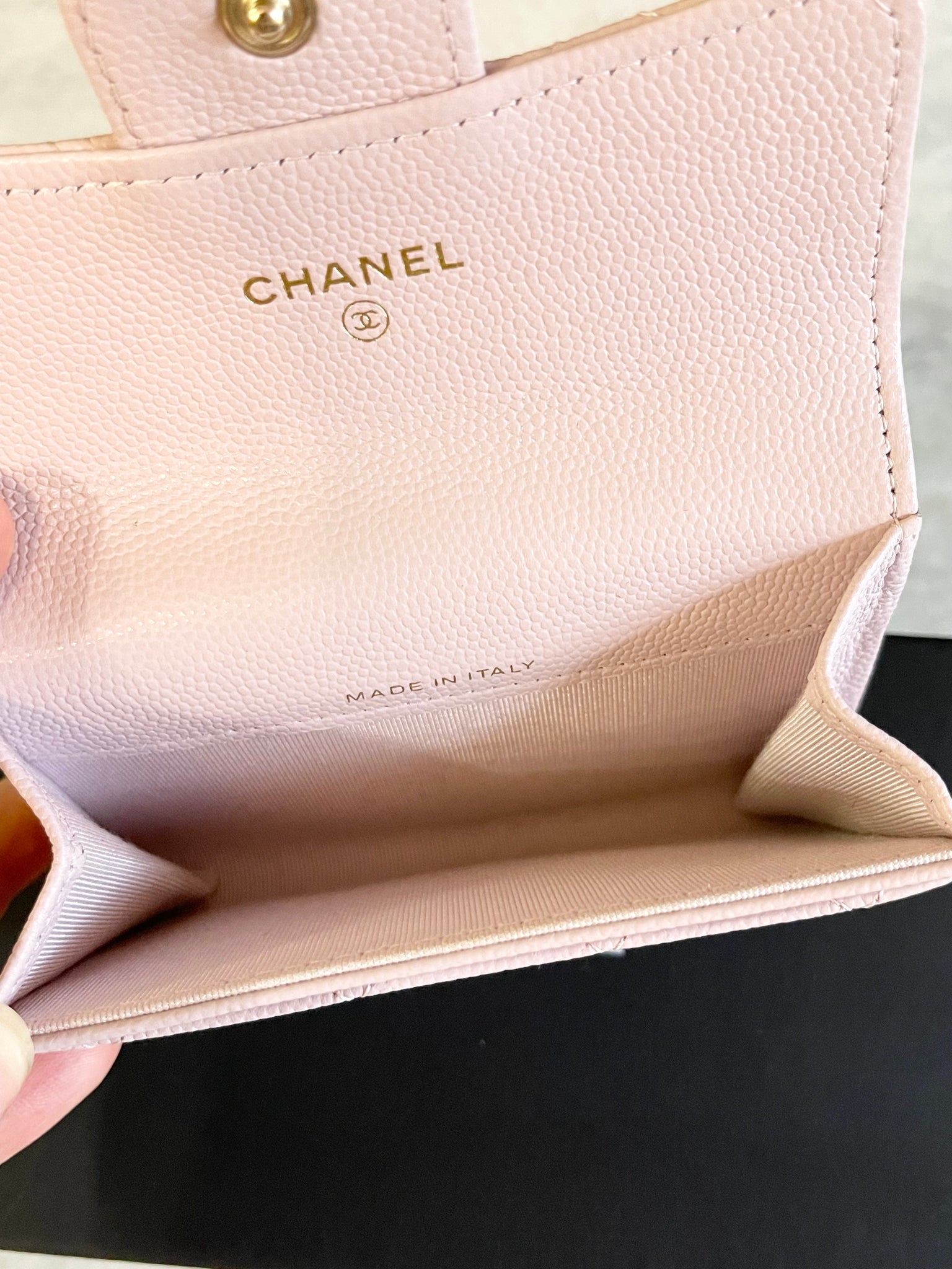 CHANEL 2021 Caviar Quilted Flap Card Holder In Light Pink