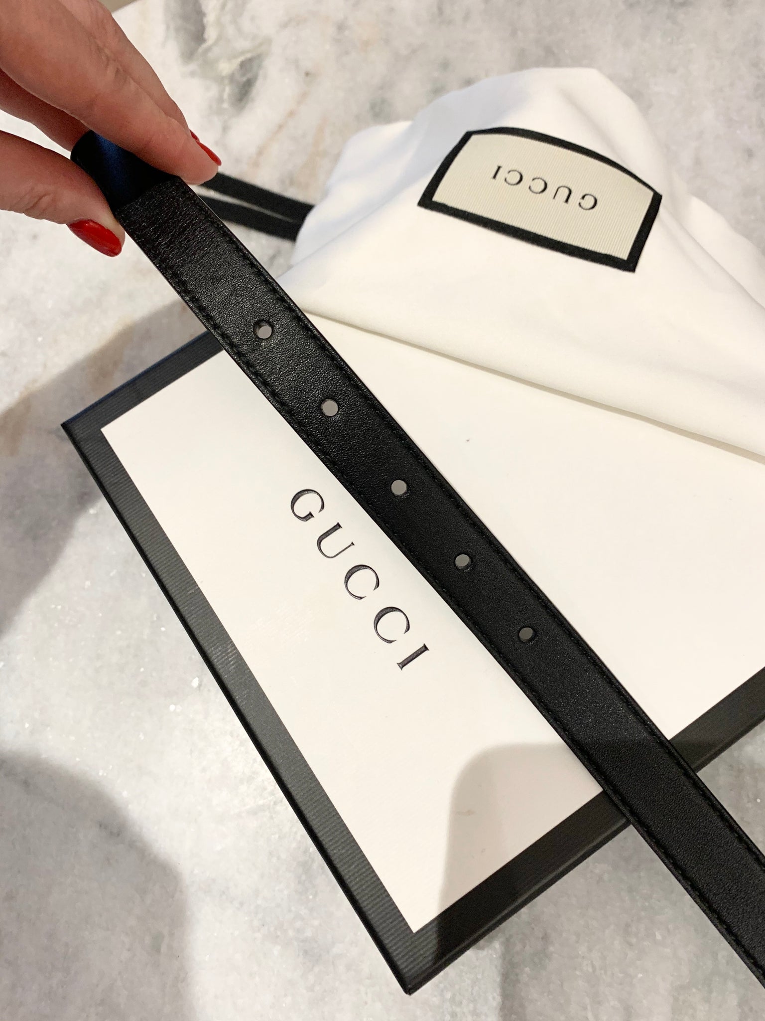 GUCCI Double G Buckle Skinny Leather Belt In Black 70/28