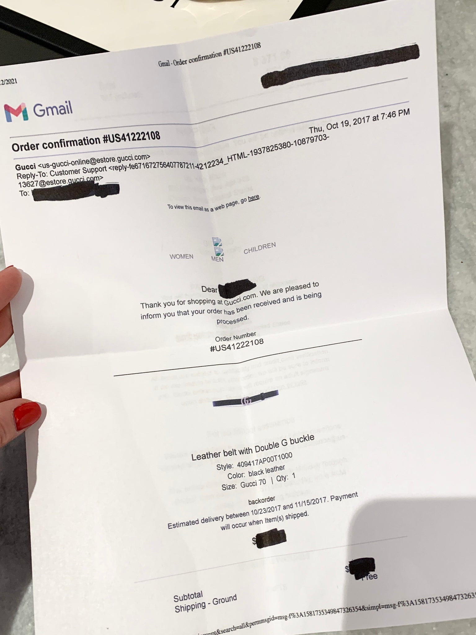 -Comes with: original box, dust bag and receipt