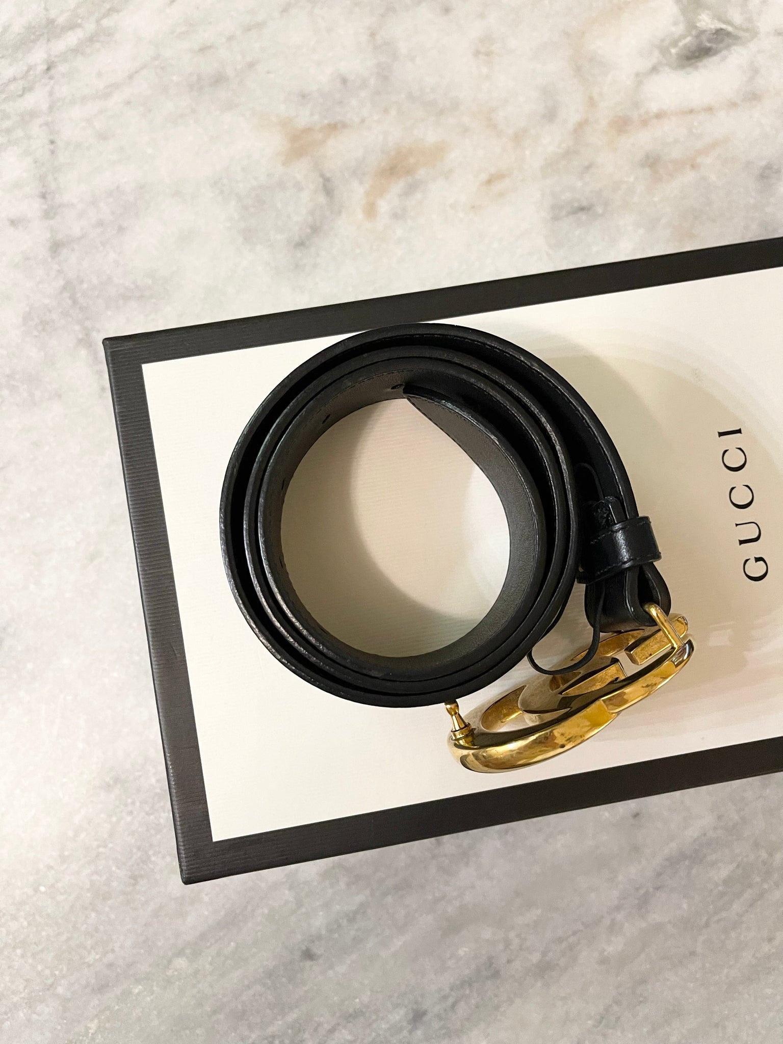 GUCCI GG 2015 Re-Edition Wide Leather Belt in Black 75cm