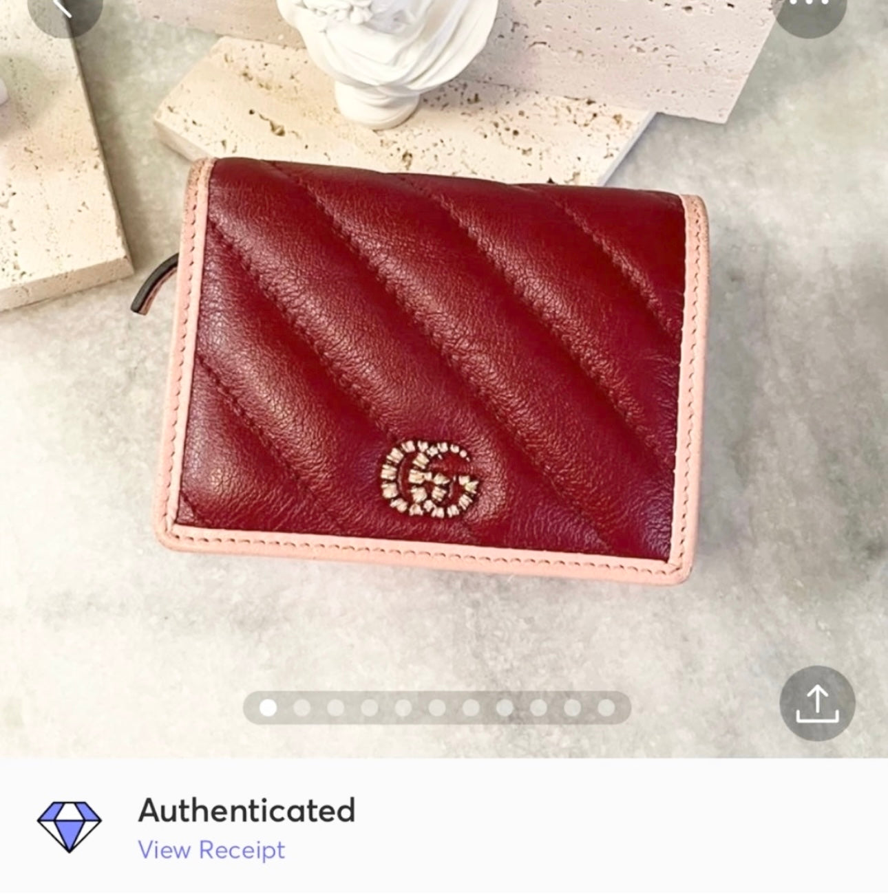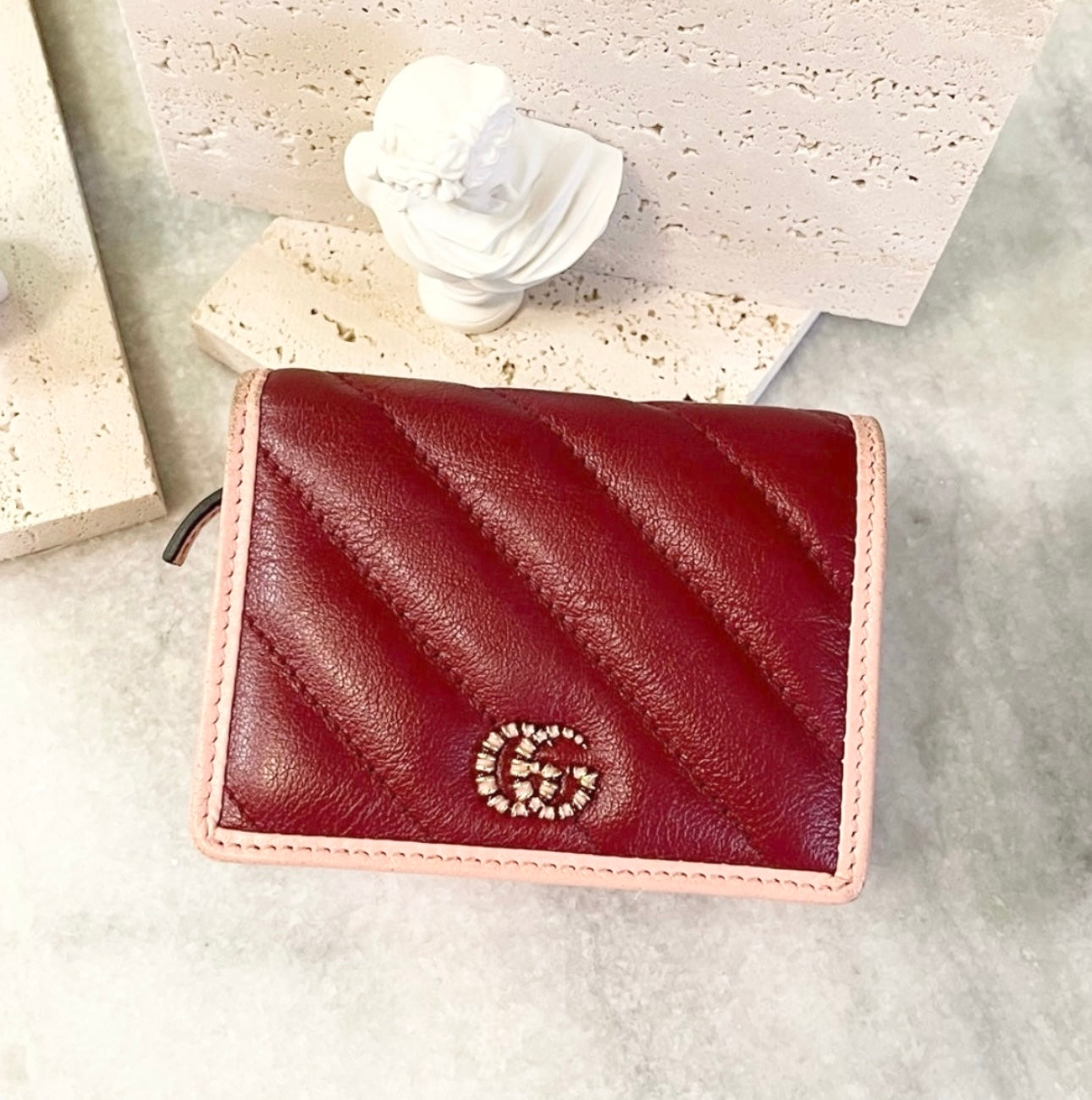GUCCI GG Marmont Bi-Fold Compact Leather Wallet in Red