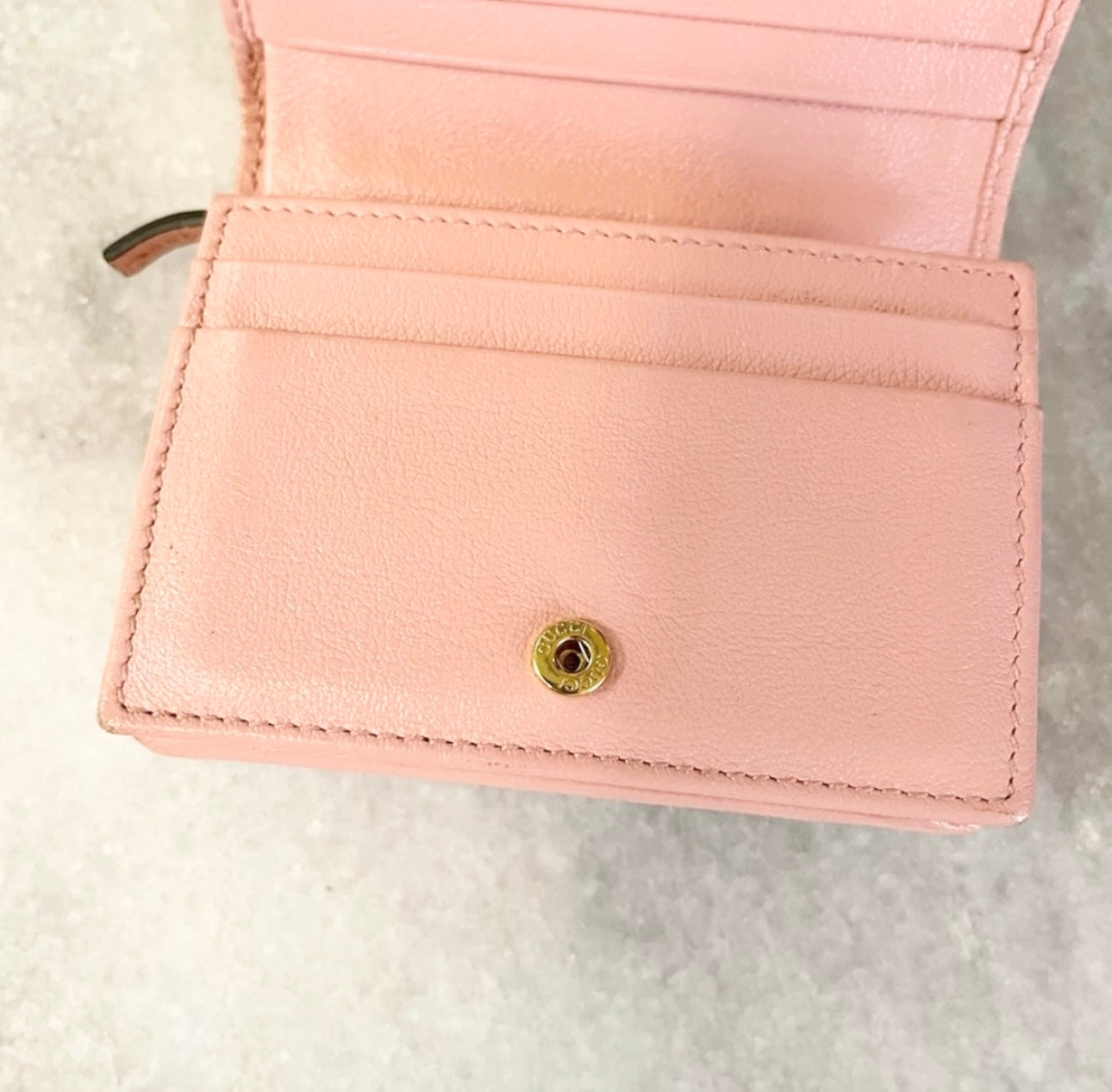 • Load image into Gallery viewer, GUCCI GG Marmont Bi-Fold Compact Leather Wallet in Red