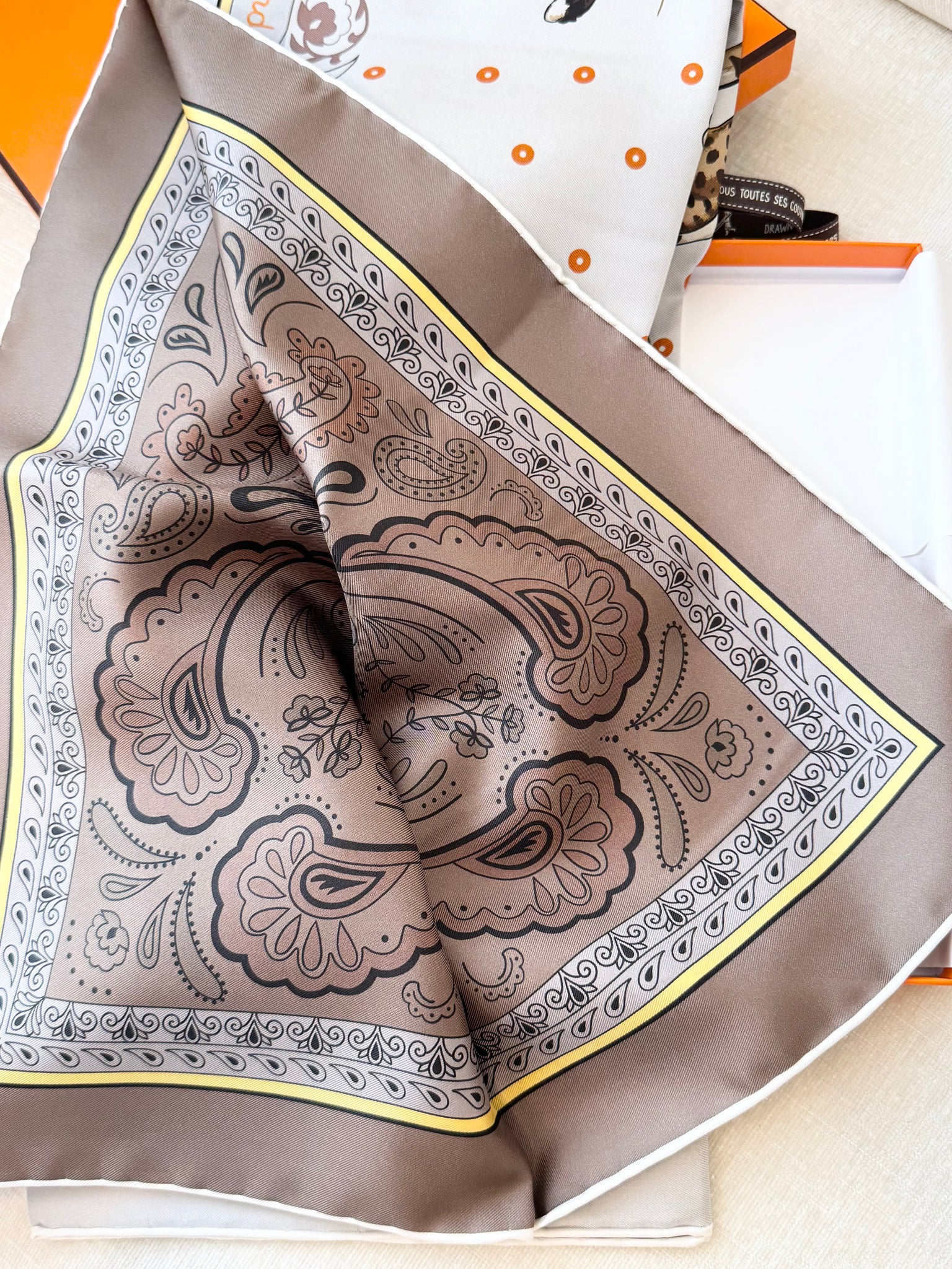 Hermès 2025 Guepards Bandana Double Face Scarf 90 in Noir / Ardoise / Rose