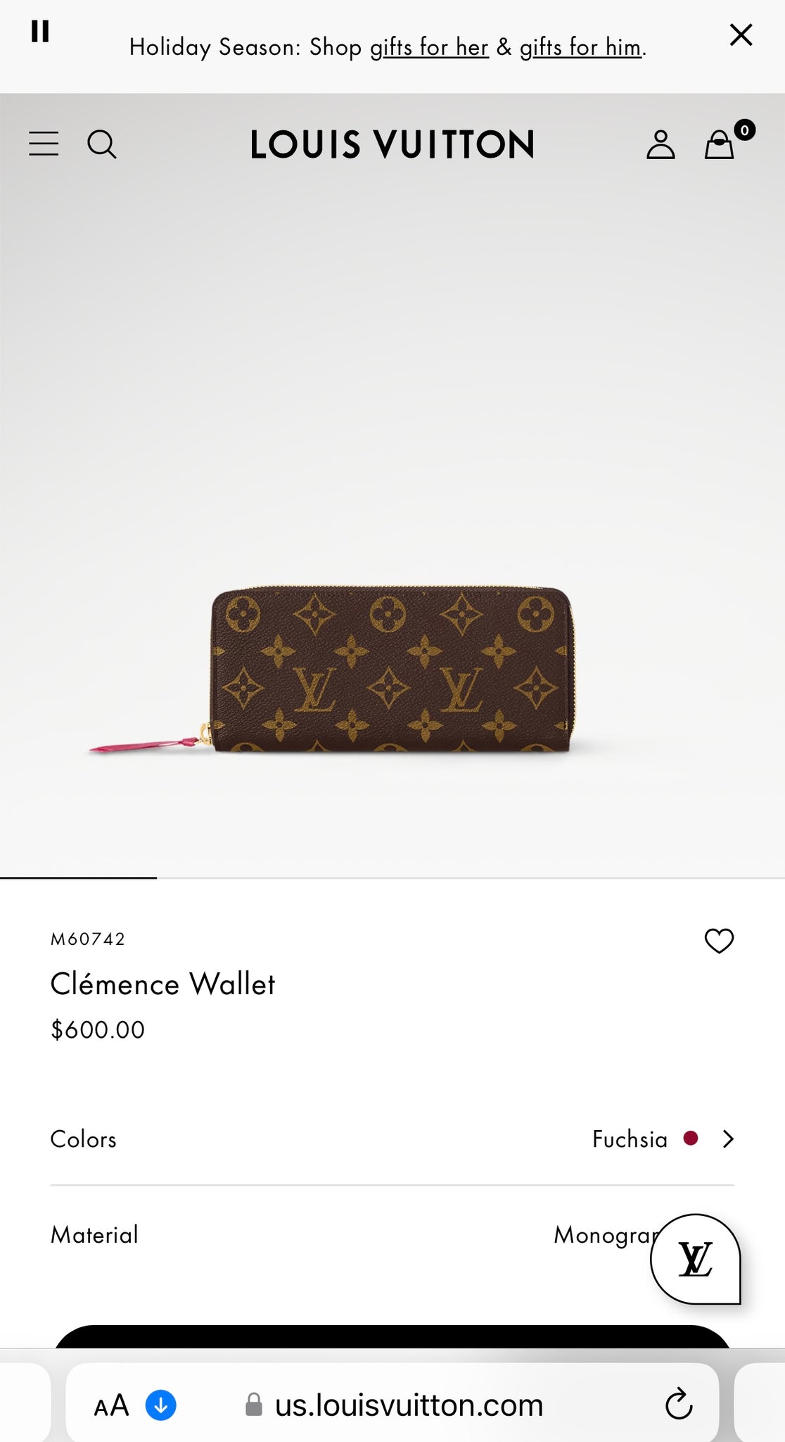 LOUIS VUITTON Clémence Monogram Zippy Wallet in Fuchsia