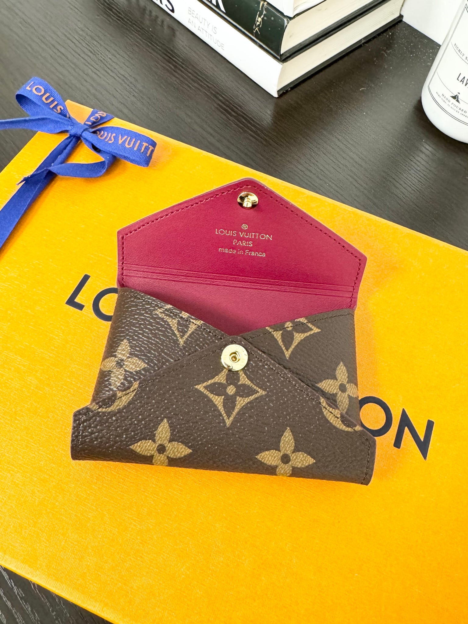 - Gold-color hardware