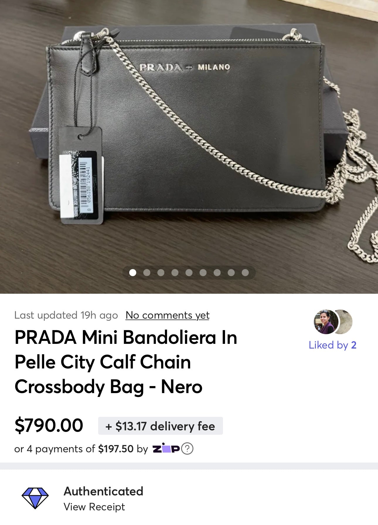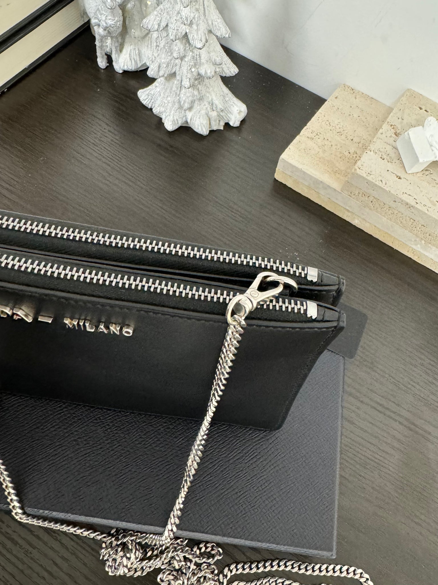 ▪️SOLD▪️PRADA Mini Bandoliera In Pelle City Calf Chain Crossbody Bag - Nero
