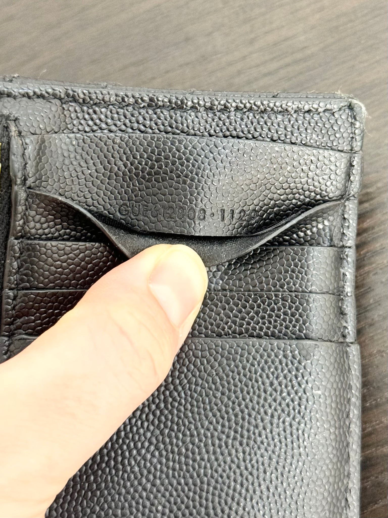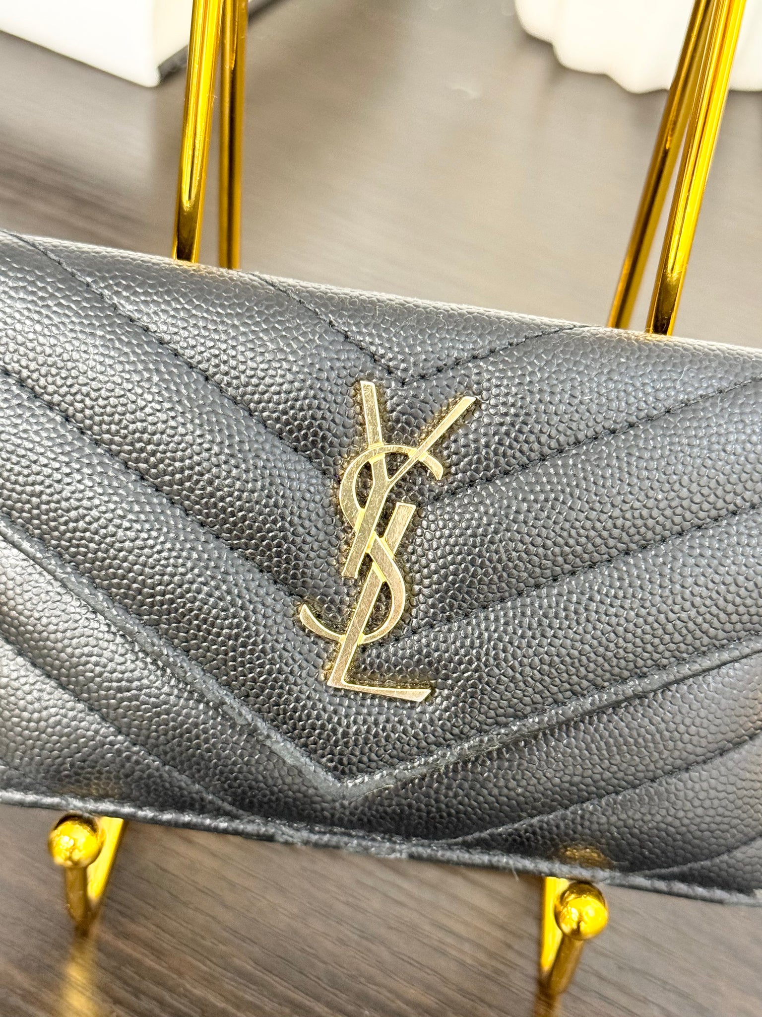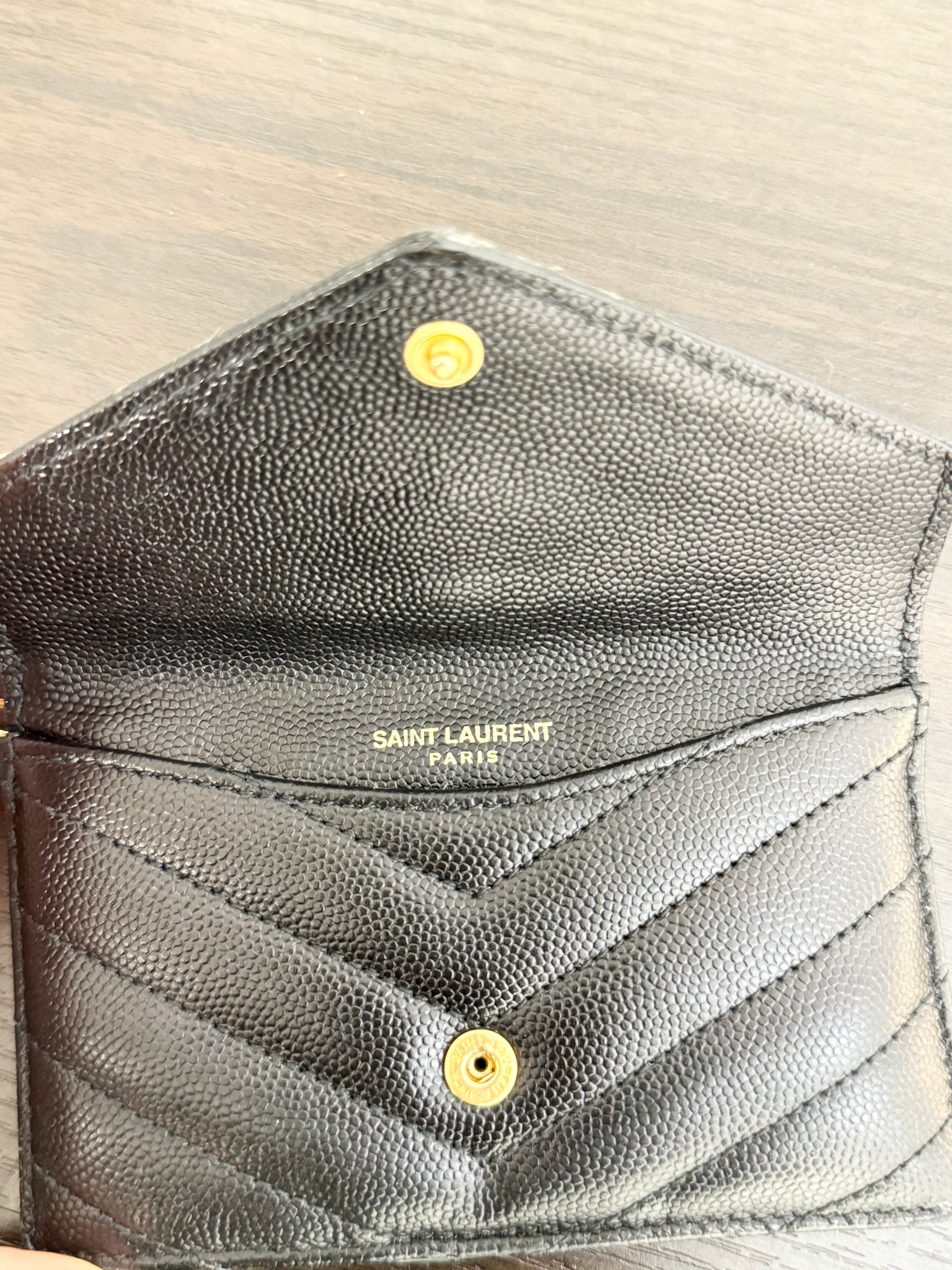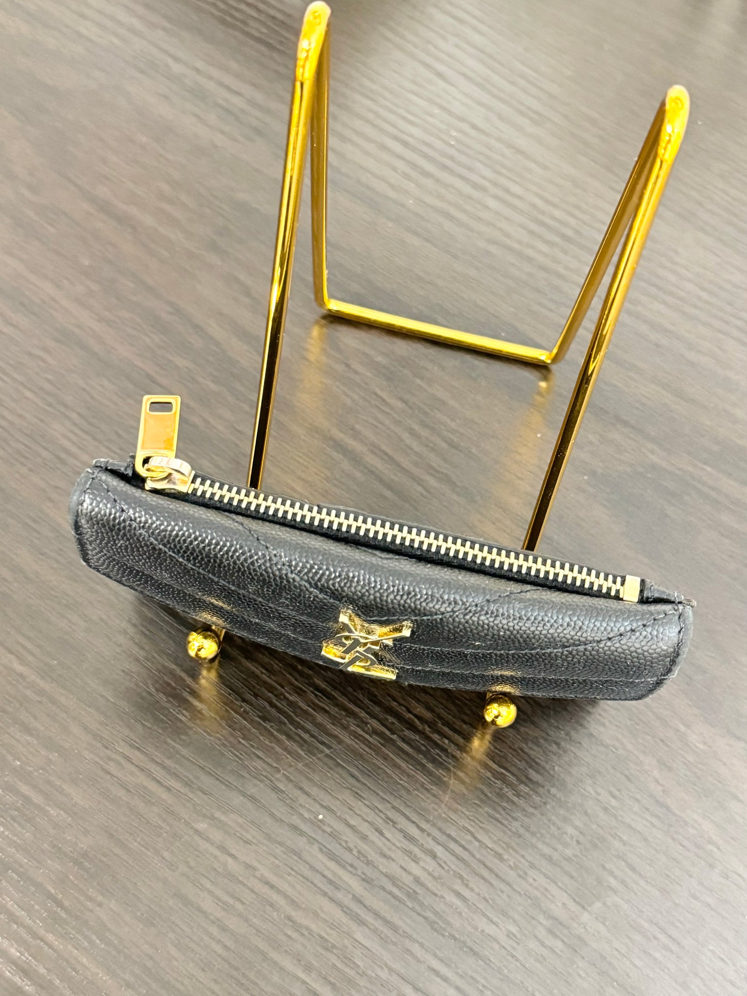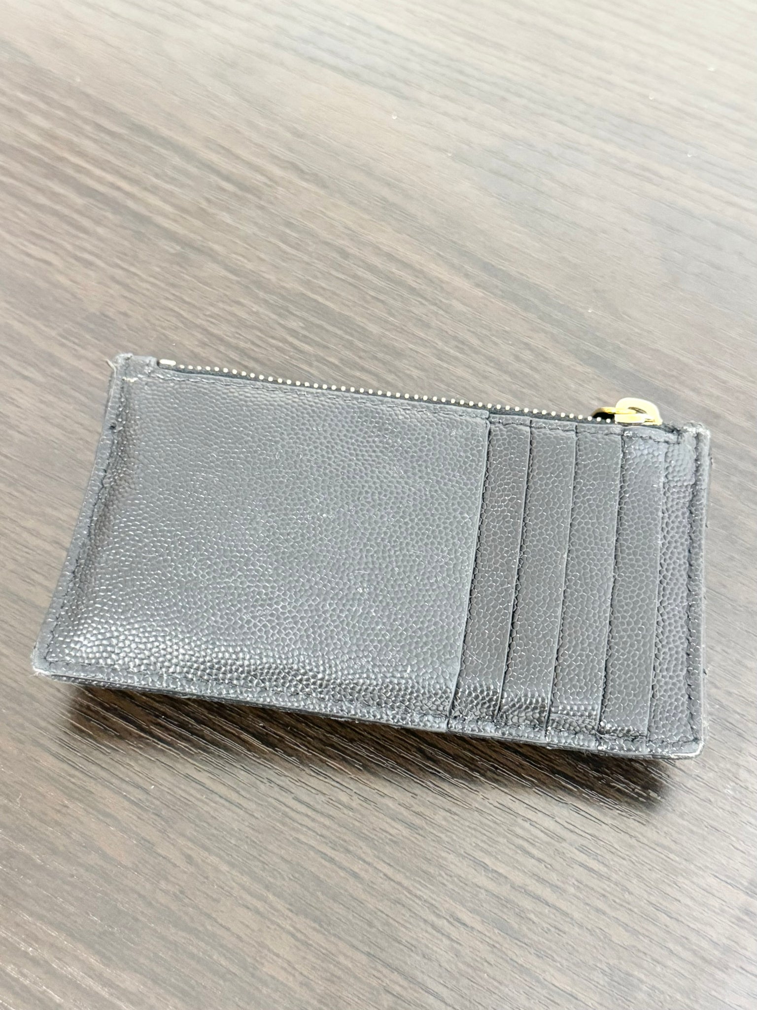 SAINT LAURENT YSL Monogram Ziptop Flap Grained Leather Card Case in Black
