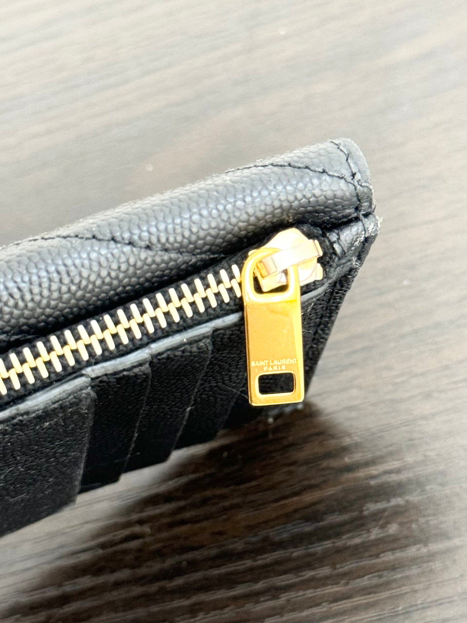 • Load image into Gallery viewer, SAINT LAURENT YSL Monogram Ziptop Flap Grained Leather Card Case in Black