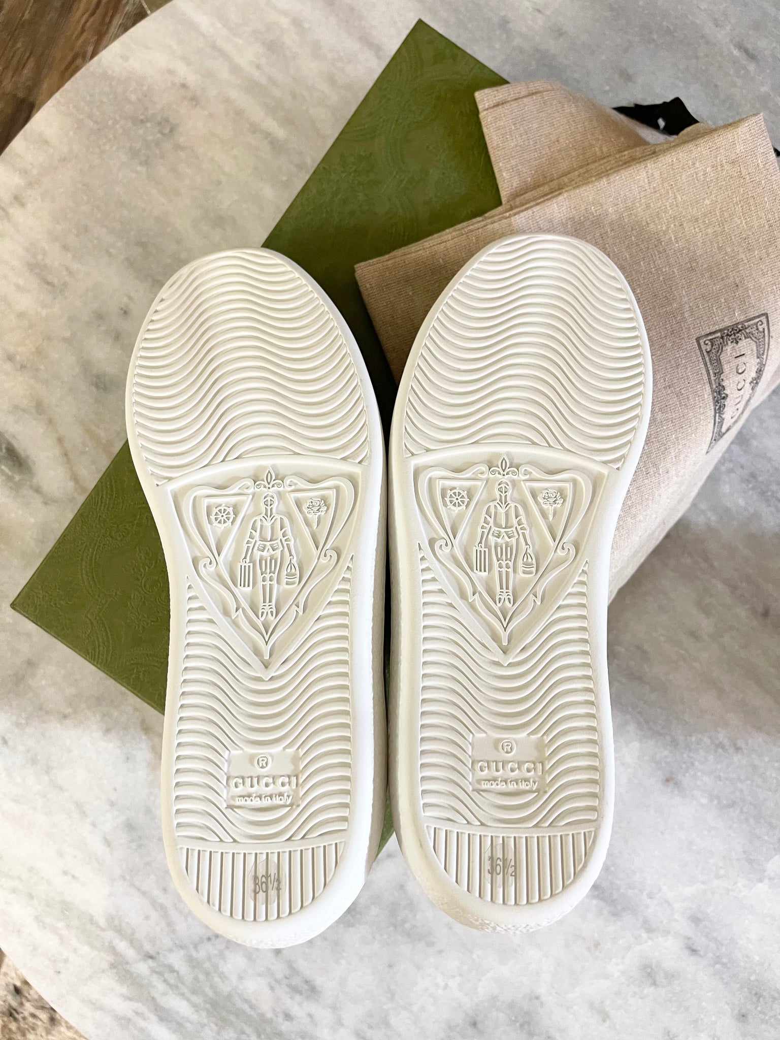 • Load image into Gallery viewer, GUCCI Women’s Ace Low Top Leather Sneakers in White (EU) 36.5 (US) 7.5