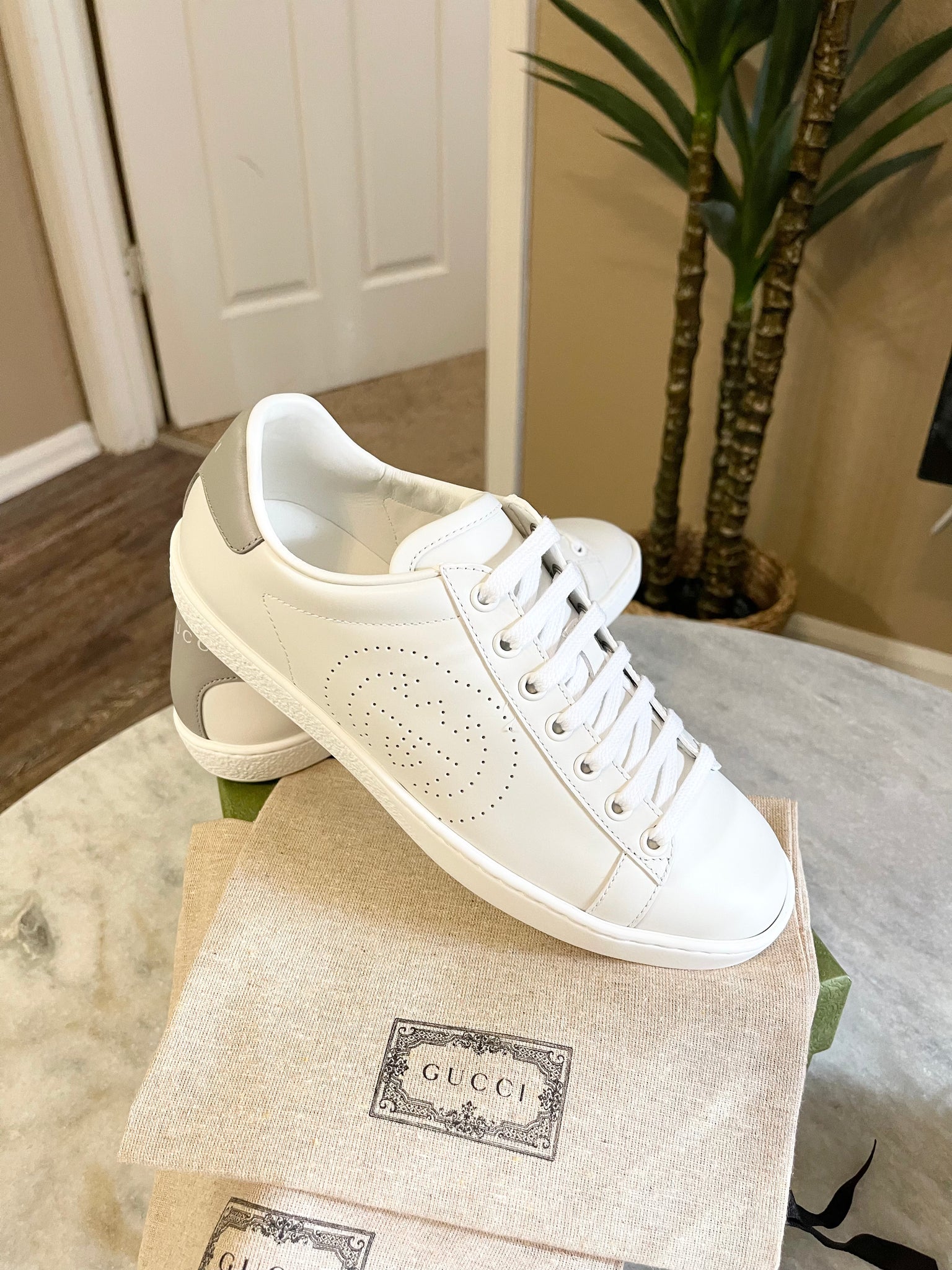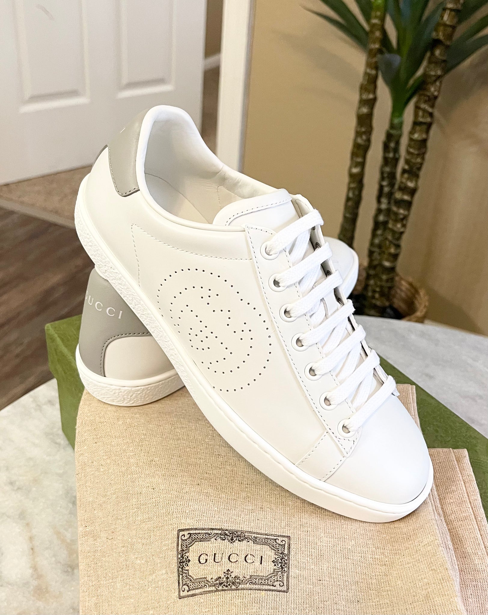 GUCCI Women’s Ace Low Top Leather Sneakers in White (EU) 36.5 (US) 7.5