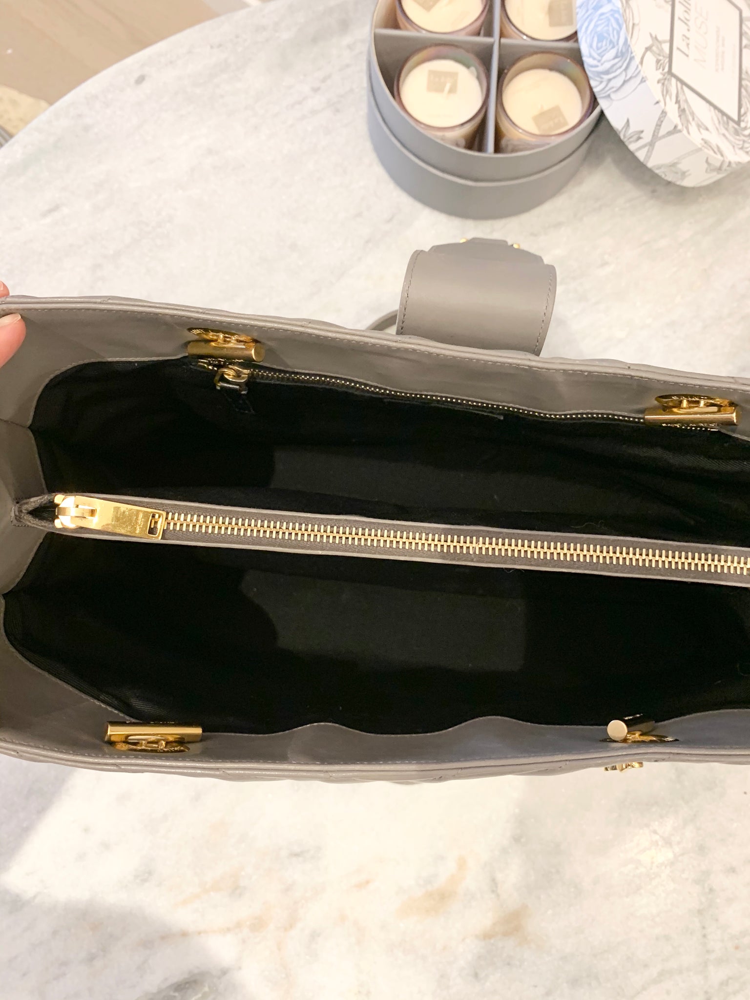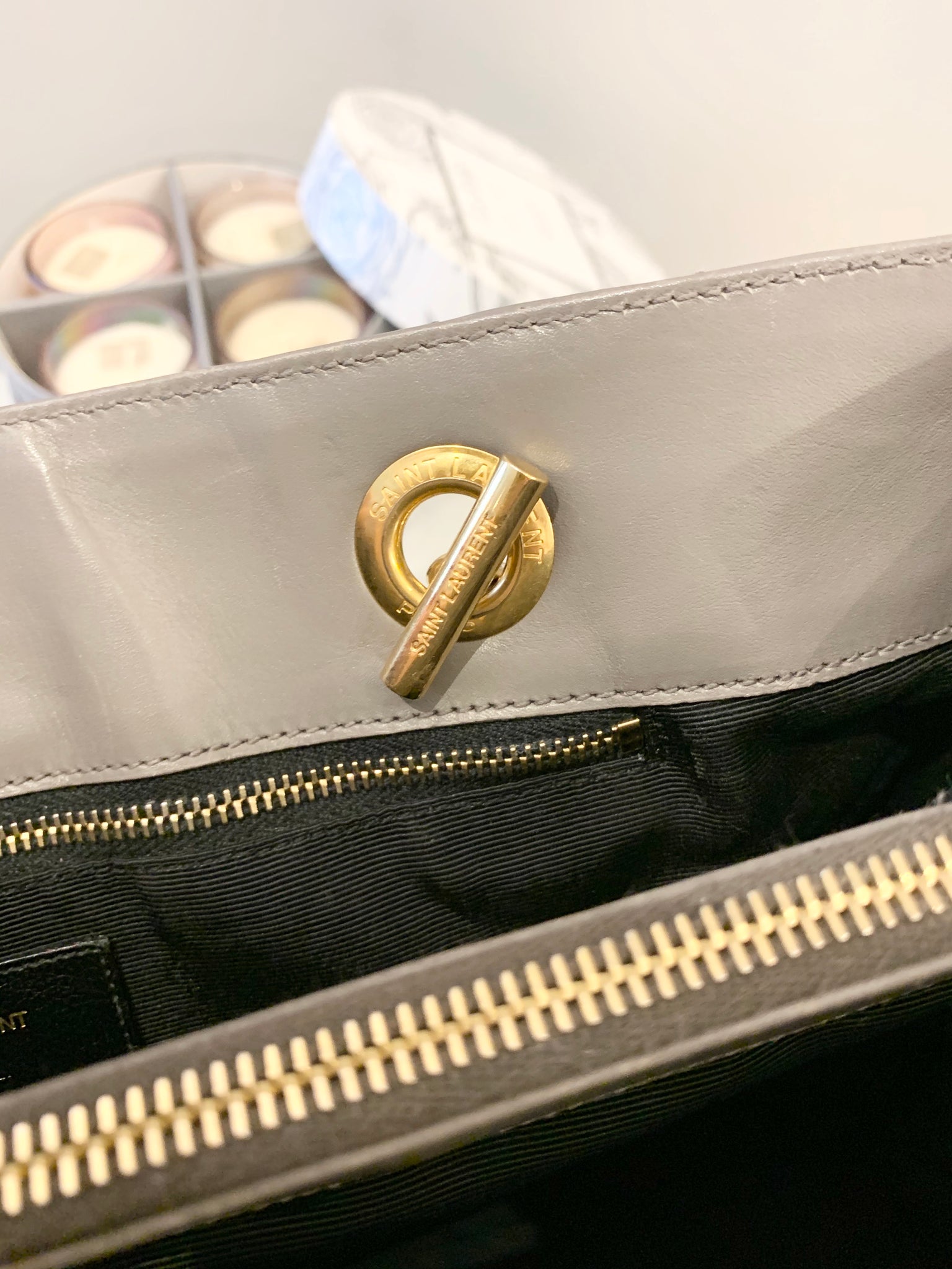 SAINT LAURENT Quilted Grained Leather Monogram Chain Bo Cassandre Tote Bag In Grey