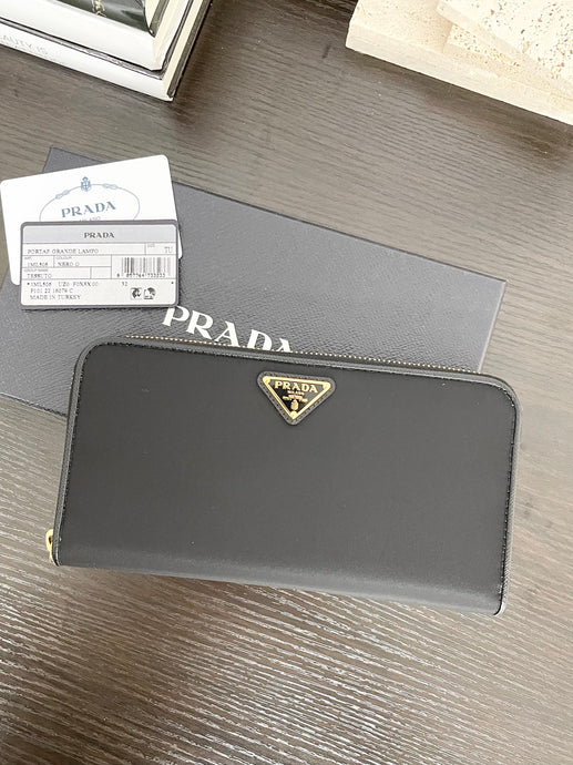 PRADA Prada Tessuto Nylon Zip Around Wallet in Black