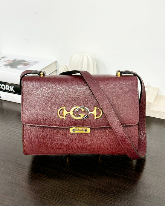 GUCCI Zumi Grain Leather Shoulder Bag in Burgundy
